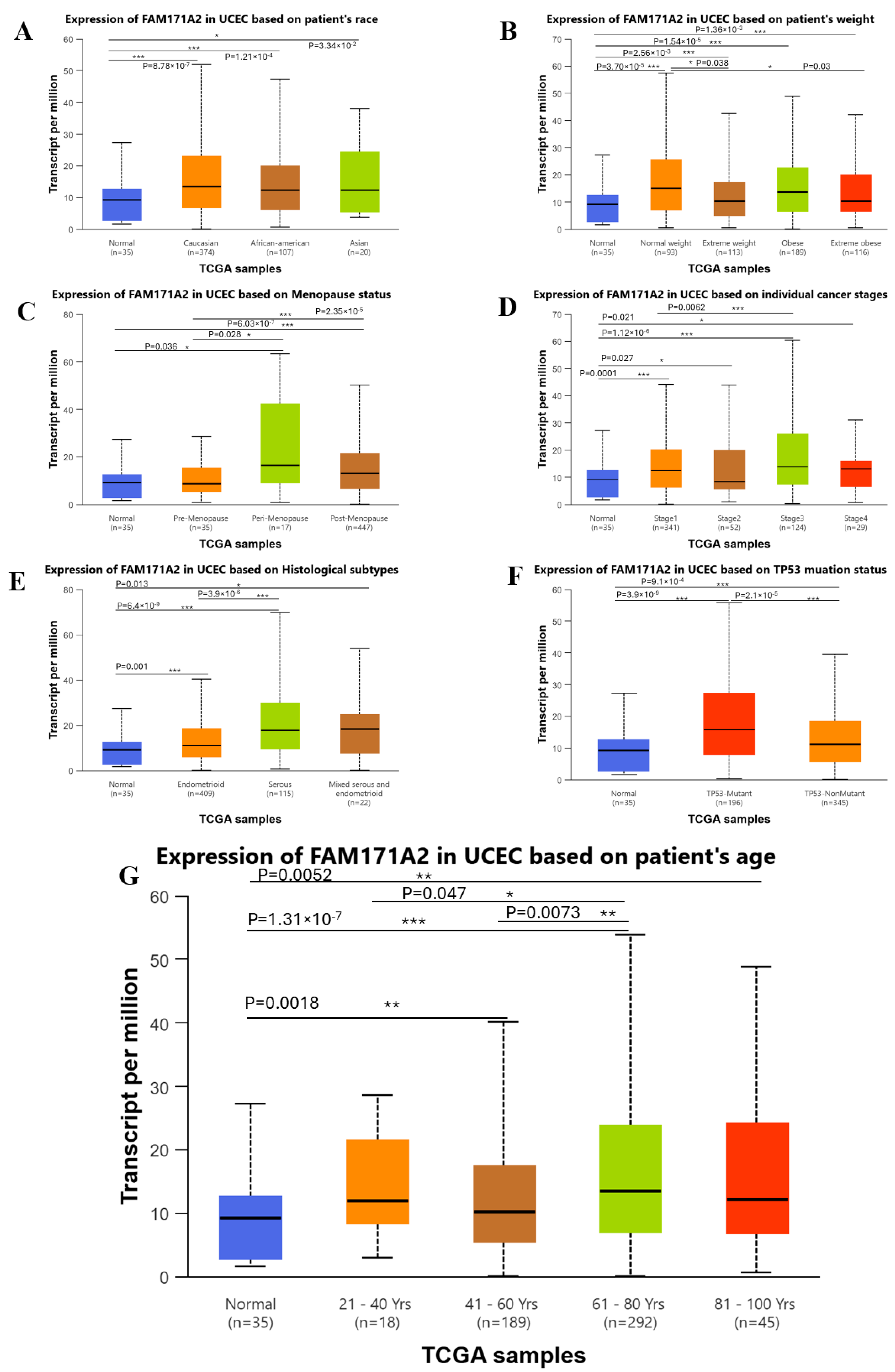 2.8.1. GEO-Based Expression Analysis FAM171A2 for UCEC