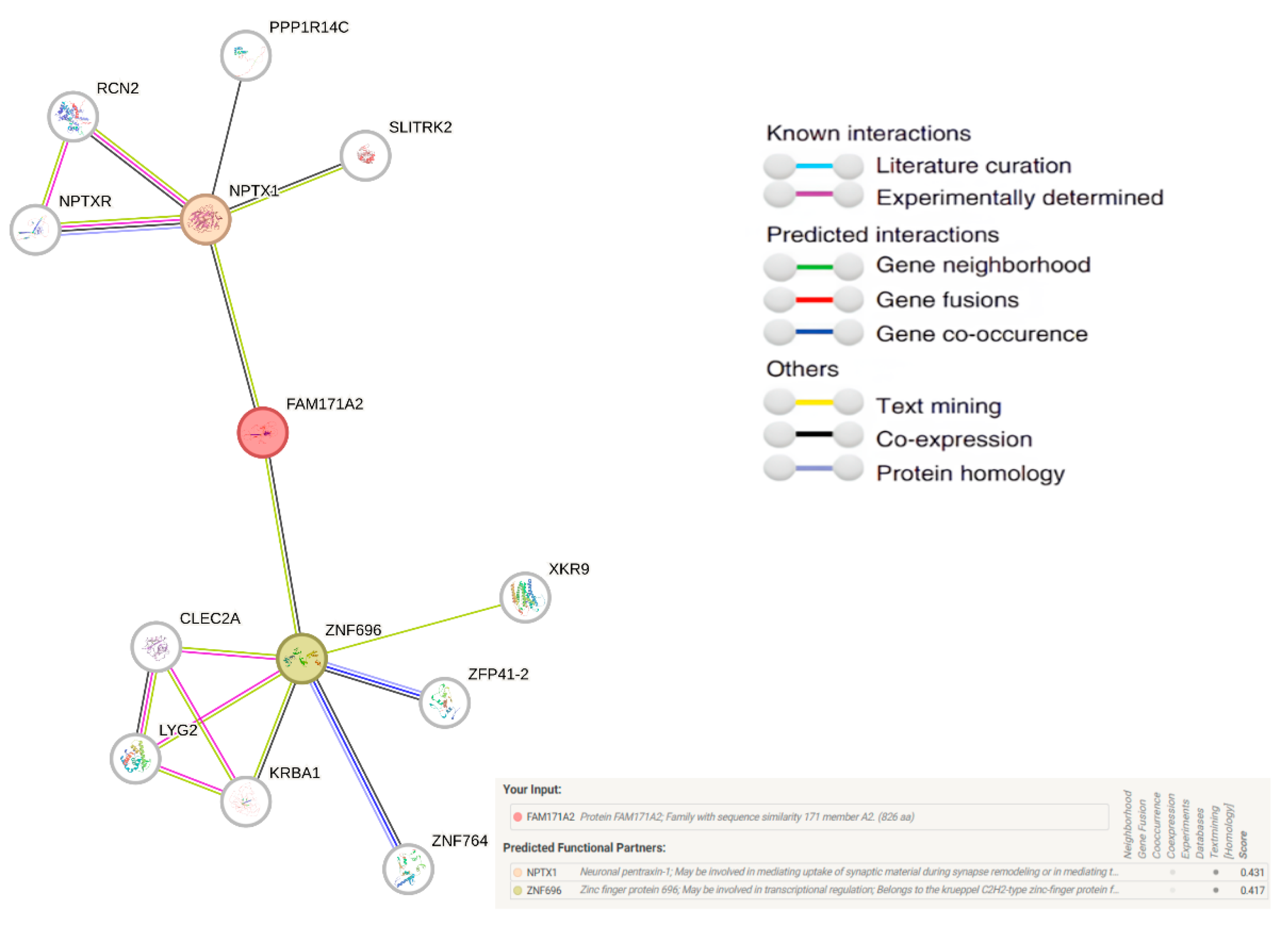 2.7. Comparative Network Analysis of FAM171A2: STRING