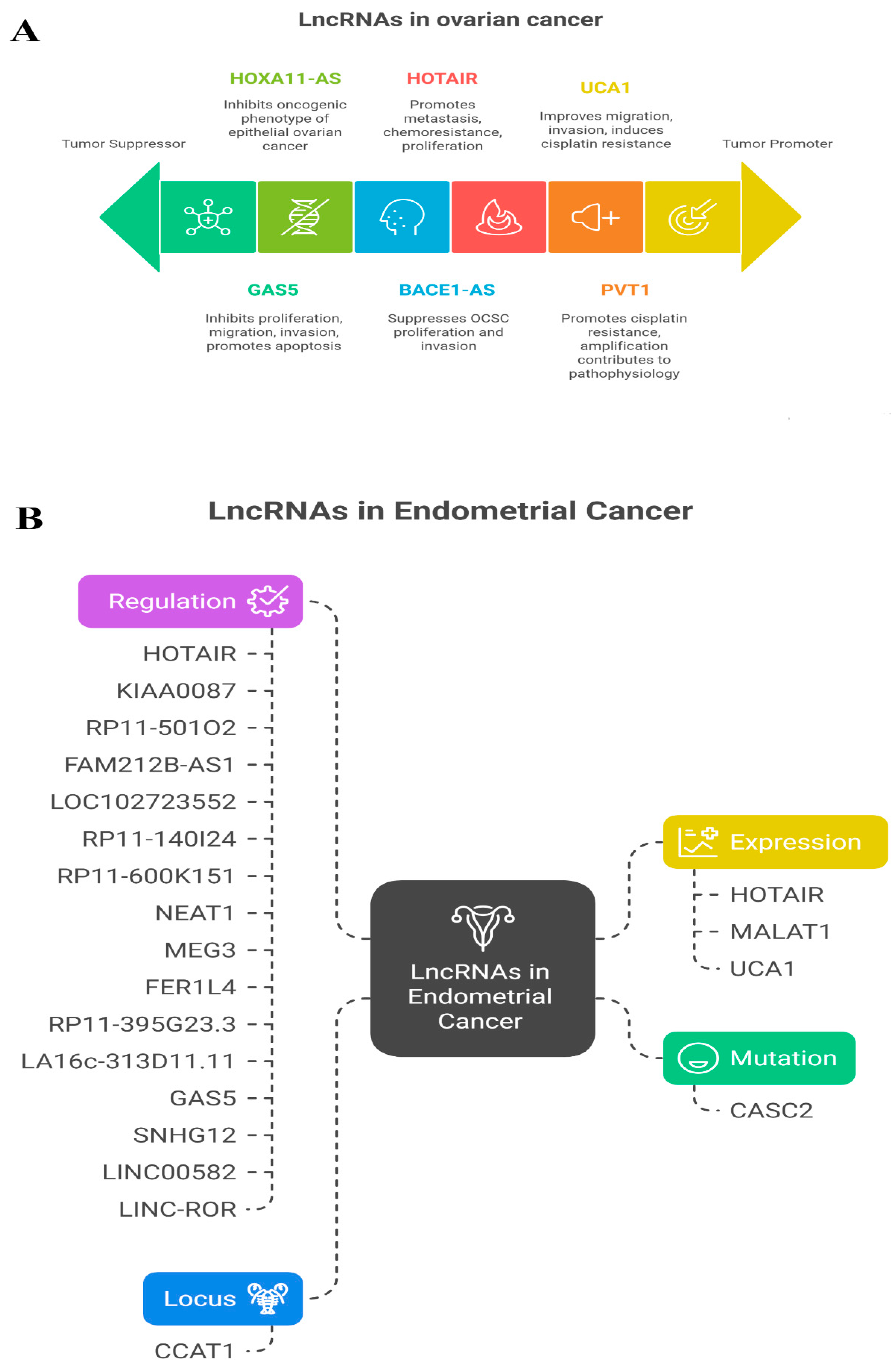 - Yang, Y.; Jiang, Y.; Wan, Y.; Zhang, L.; Qiu, J.; Zhou, S.; Cheng, W. UCA1 functions as a competing endogenous RNA to suppress epithelial ovarian cancer metastasis. Tumor Biol. 2016, 37, 10633–10641. [Google Scholar] [CrossRef] [PubMed]