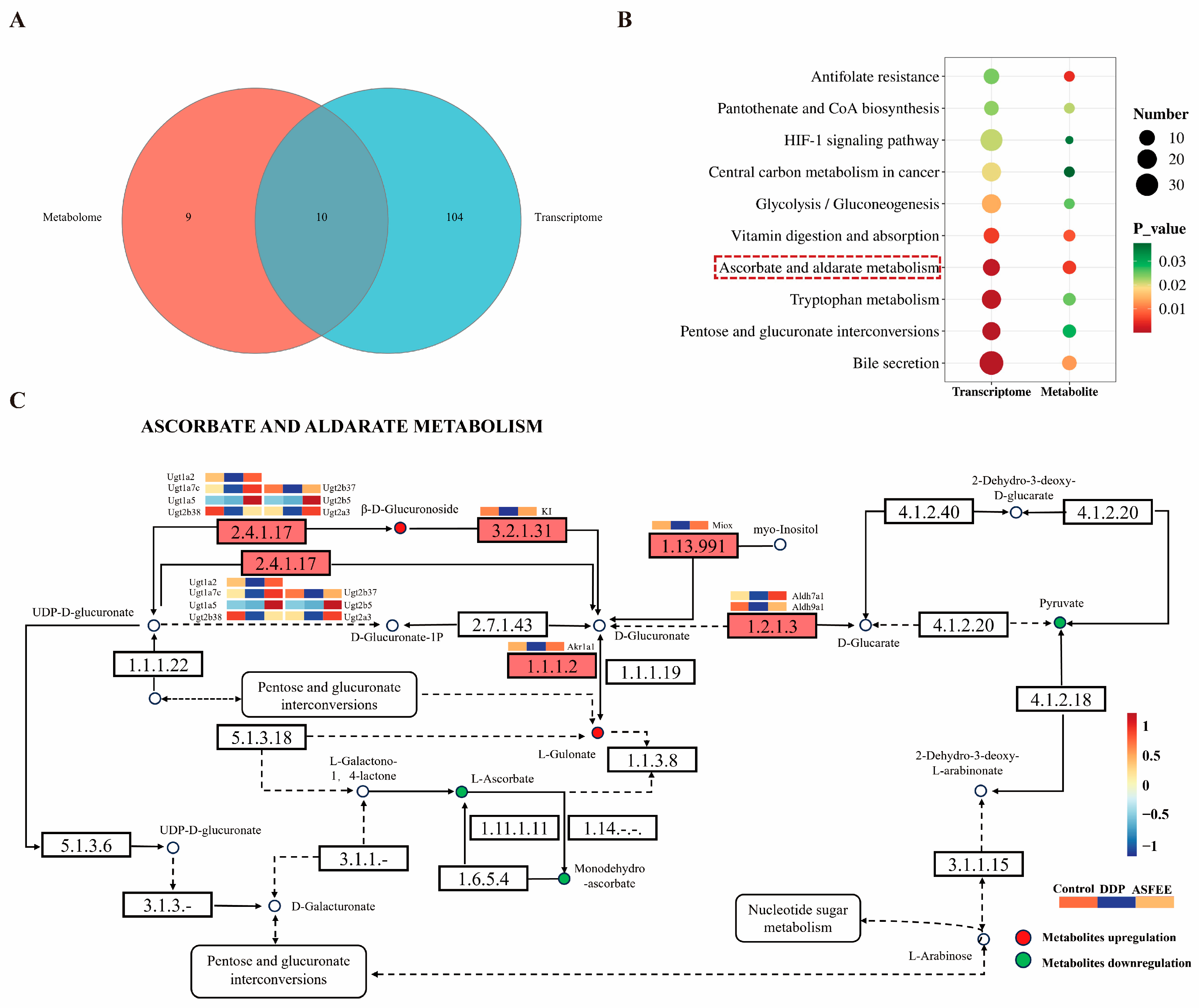 - Liang, H.; Song, K. Elucidating ascorbate and aldarate metabolism pathway characteristics via integration of untargeted metabolomics and transcriptomics of the kidney of high-fat diet-fed obese mice. PLoS ONE 2024, 19, e0300705. [Google Scholar] [CrossRef]