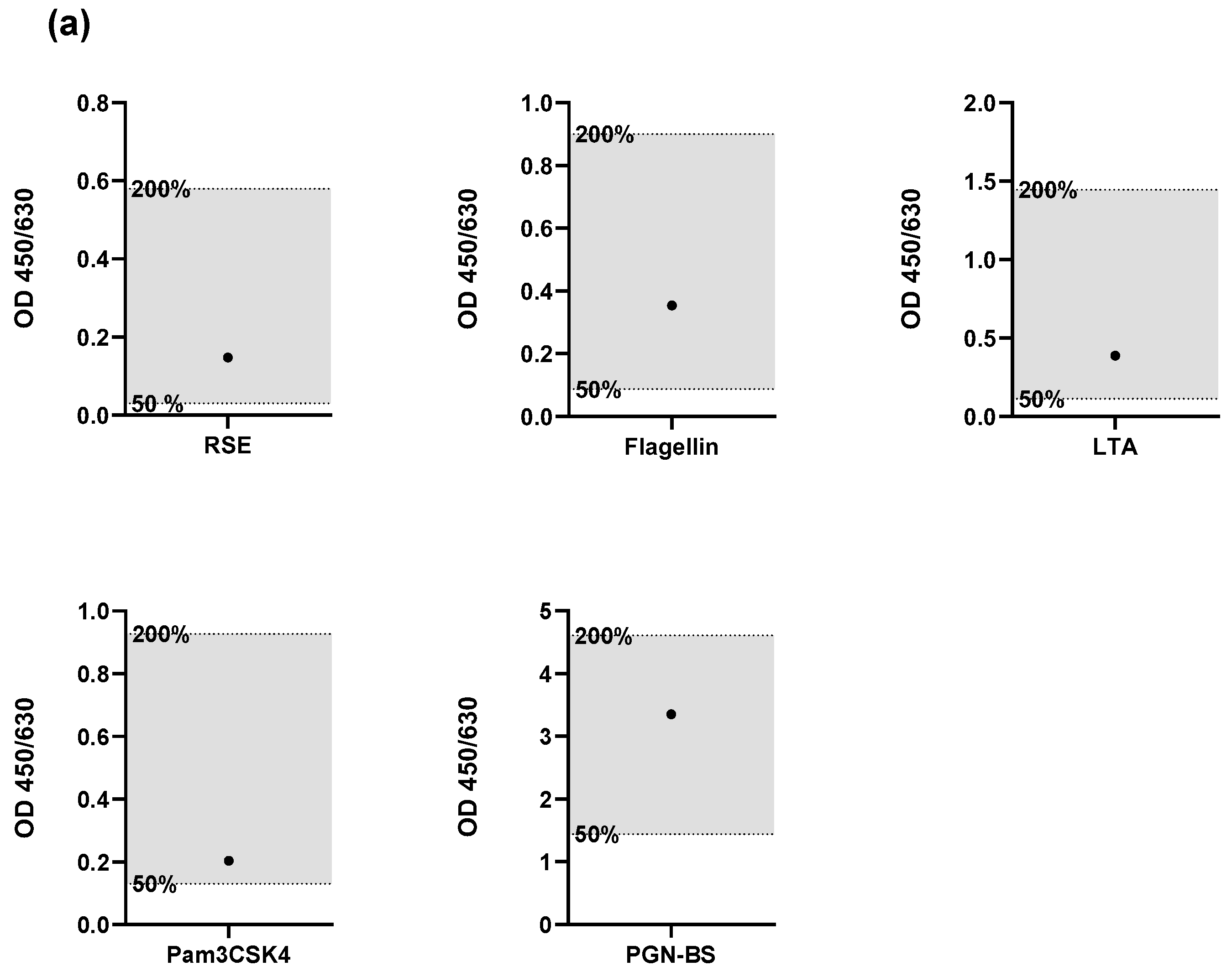 - Kikkert, R.; de Groot, E.R.; Aarden, L.A. Cytokine induction by pyrogens: Comparison of whole blood, mononuclear cells, and TLR-transfectants. J. Immunol. Methods 2008, 336, 45–55. [Google Scholar] [CrossRef] [PubMed]