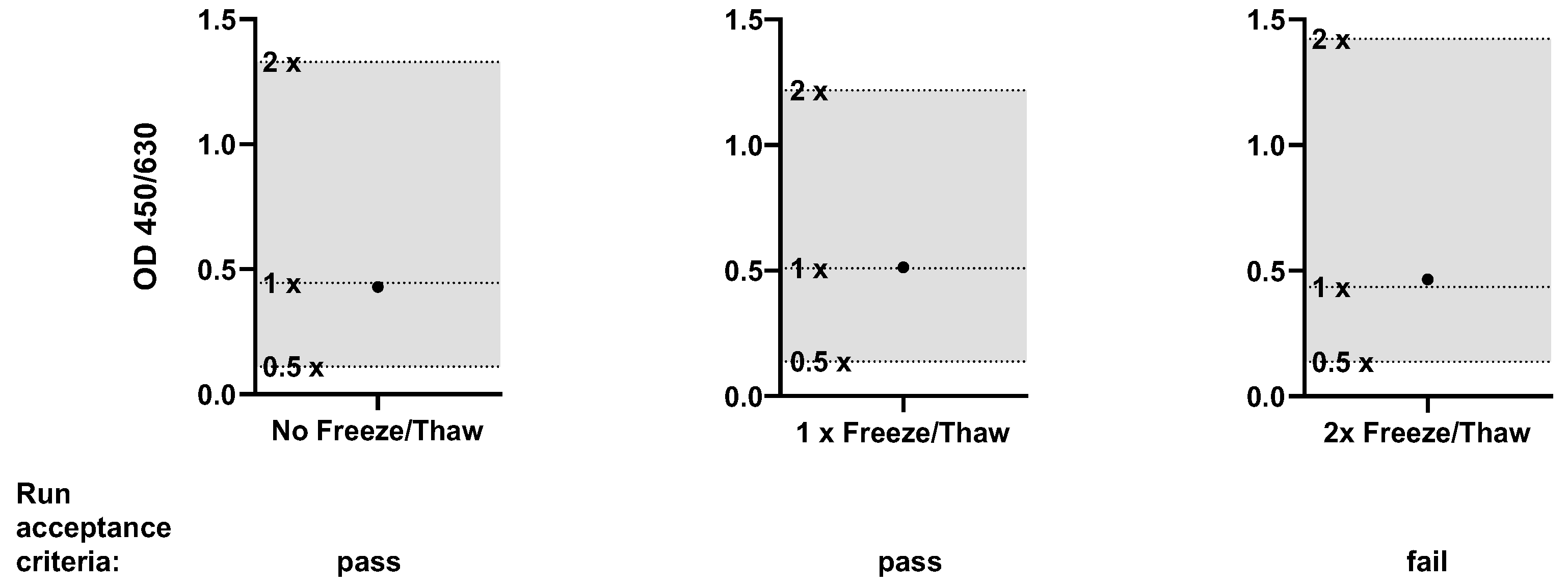 | Cut-off value of the blank | The cut-off value of the blank (corresponding to LOD) must be below the signal of the LOQ (=OD (0.05 EU/mL)) 1 |