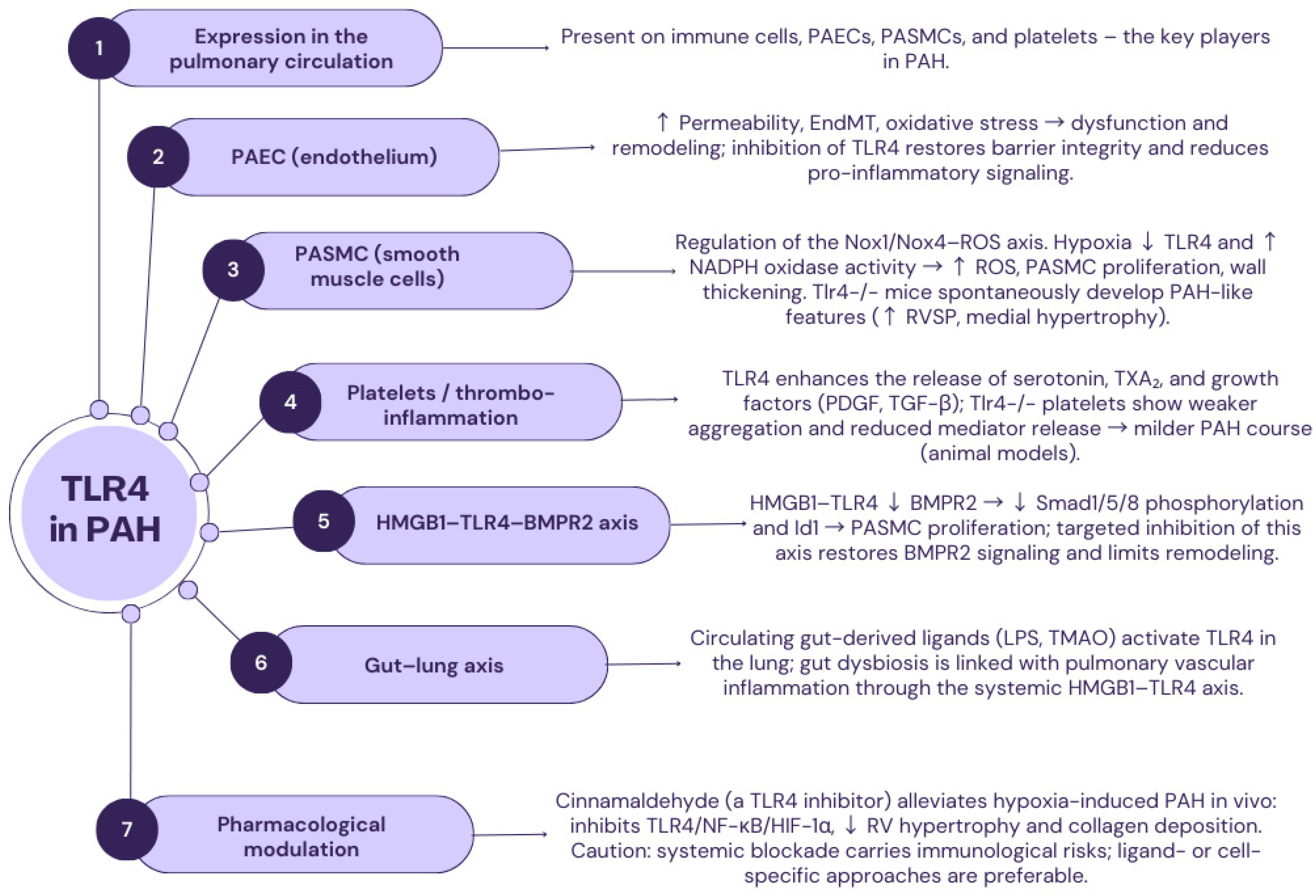 | Biomarkers and therapeutic implications | Candidate immunoinfiltration biomarker (requires translational validation) | Potential biomarker of inflammatory activity; modification of TLR2 activity considered a therapeutic target in PAH |