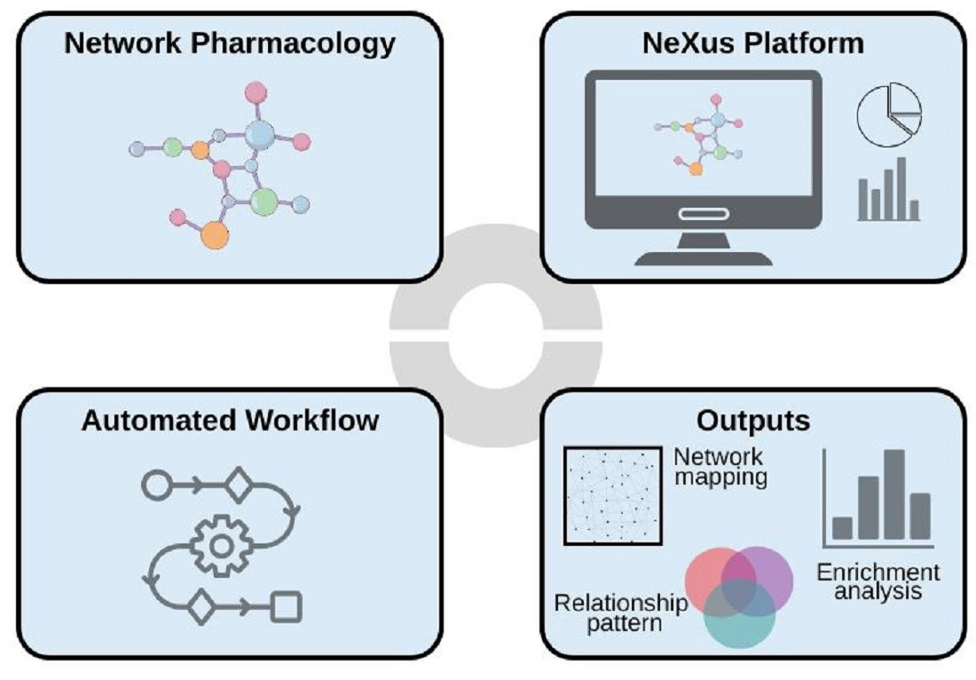 To address these gaps, we present NeXus v1.2, an automated and integrated platform designed to streamline network pharmacology and multi-method enrichment analysis. NeXus v1.2 unifies network construction, analysis, and visualization with enrichment methodologies (ORA, GSEA, and GSVA), providing robust statistical frameworks and publication-quality outputs (300 DPI). By automating manual processes and integrating multiple analytical dimensions, NeXus v1.2 enables researchers to focus on biological interpretation rather than technical implementation, thereby enhancing efficiency, reproducibility, and insight generation in drug discovery and development.
