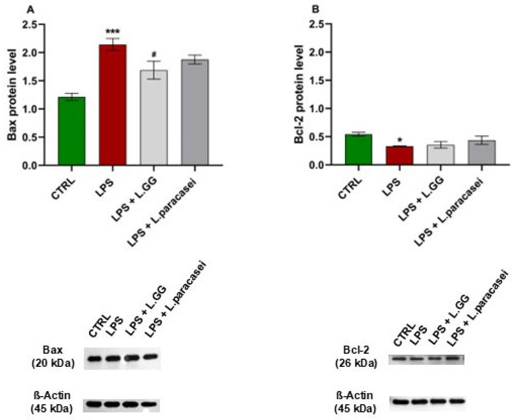 - Sharma, S.; Singh, R.L.; Kakkar, P. Modulation of Bax/Bcl-2 and Caspases by Probiotics during Acetaminophen Induced Apoptosis in Primary Hepatocytes. Food Chem. Toxicol. 2011, 49, 770–779. [Google Scholar] [CrossRef]