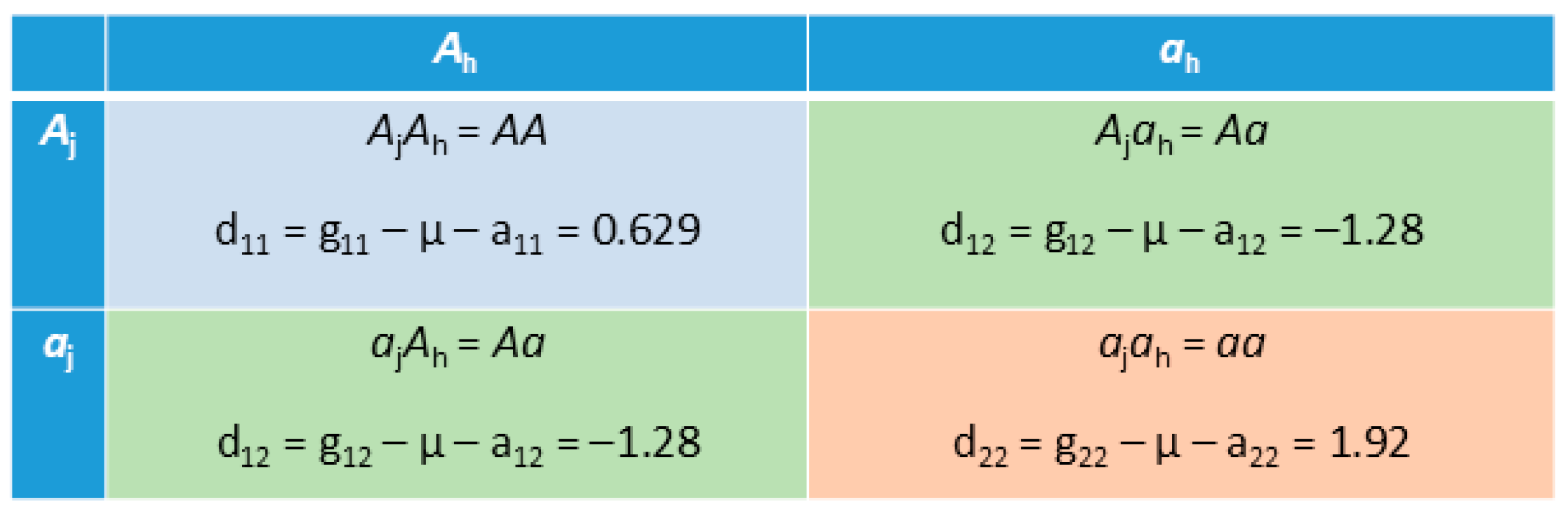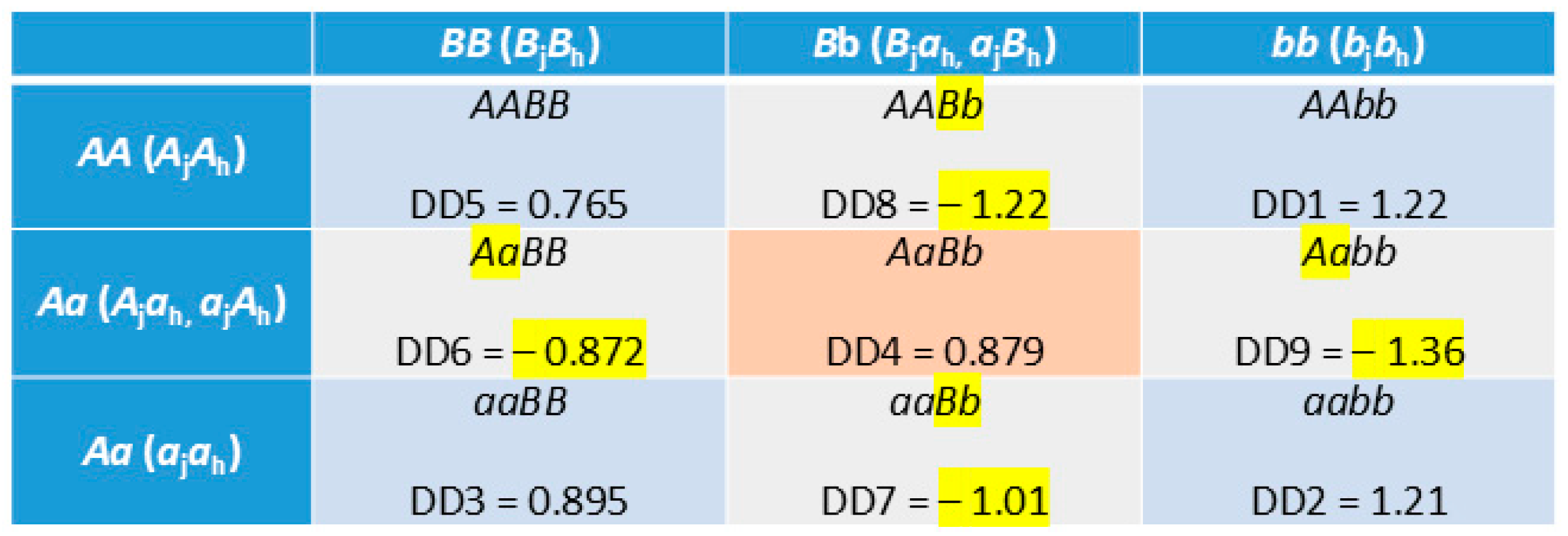 2.4. Additive × Dominance (A × D and D × A) Epistasis Effects