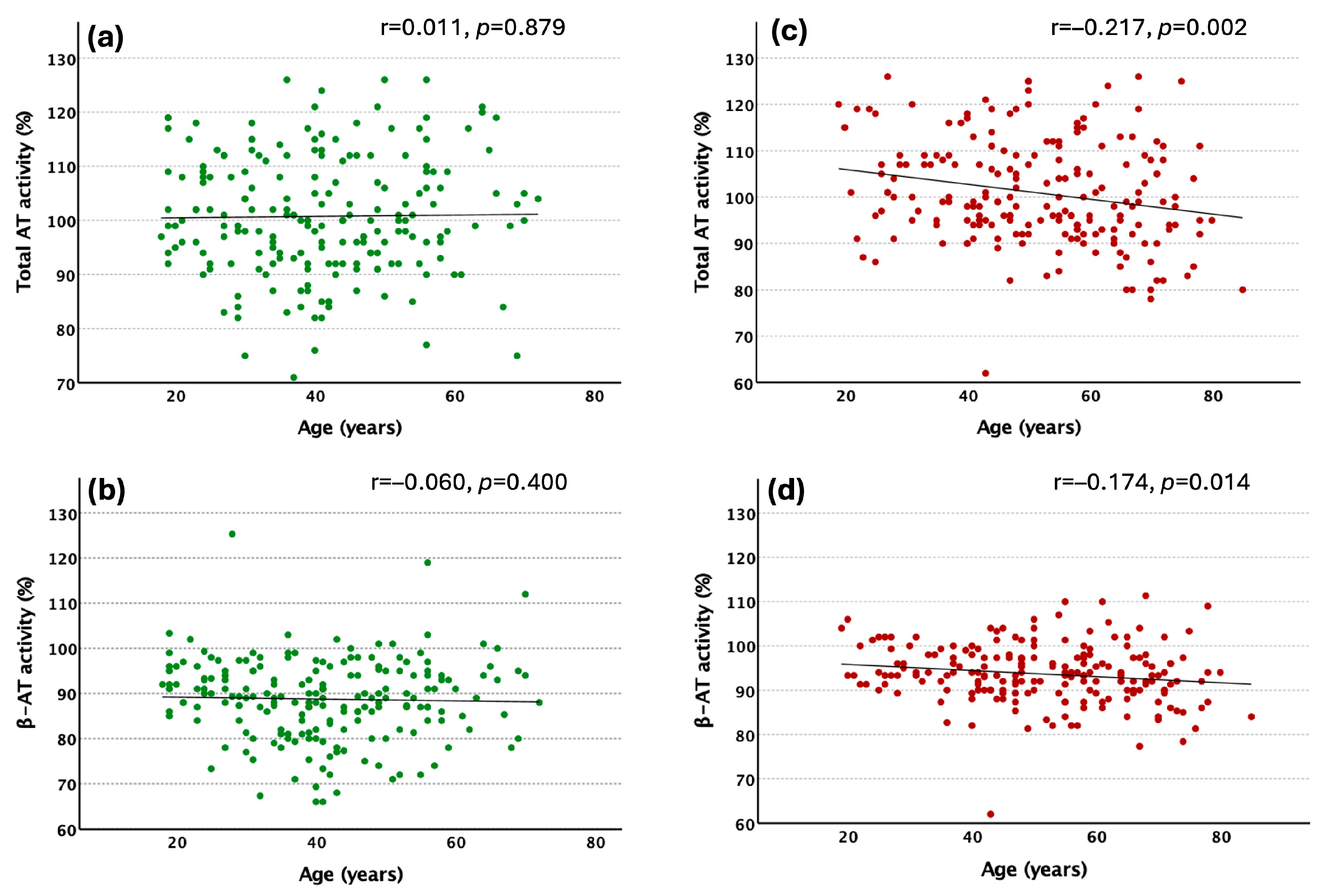 | β-AT activity (%) (median, IQR) | Control | 89.3 (84.0–95.0) | 89.0 (81.7–94.0) | 90.0 (86.0–95.3) | 0.219 |