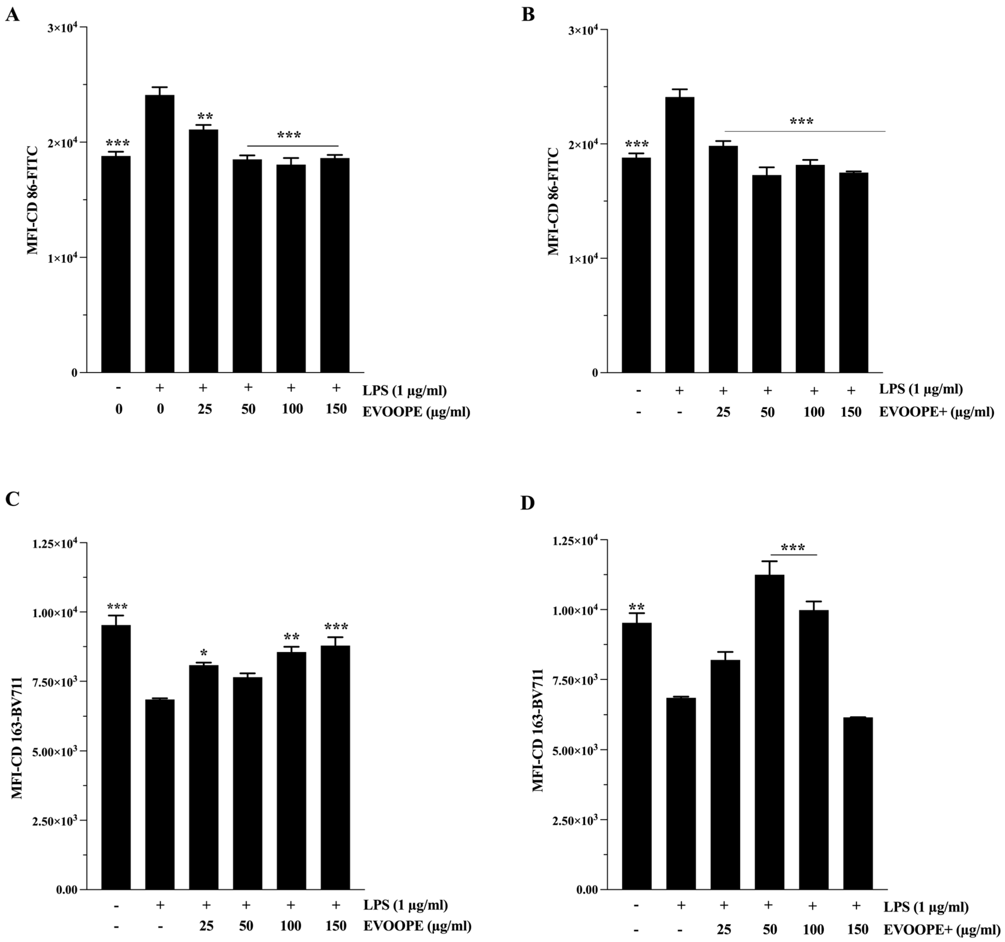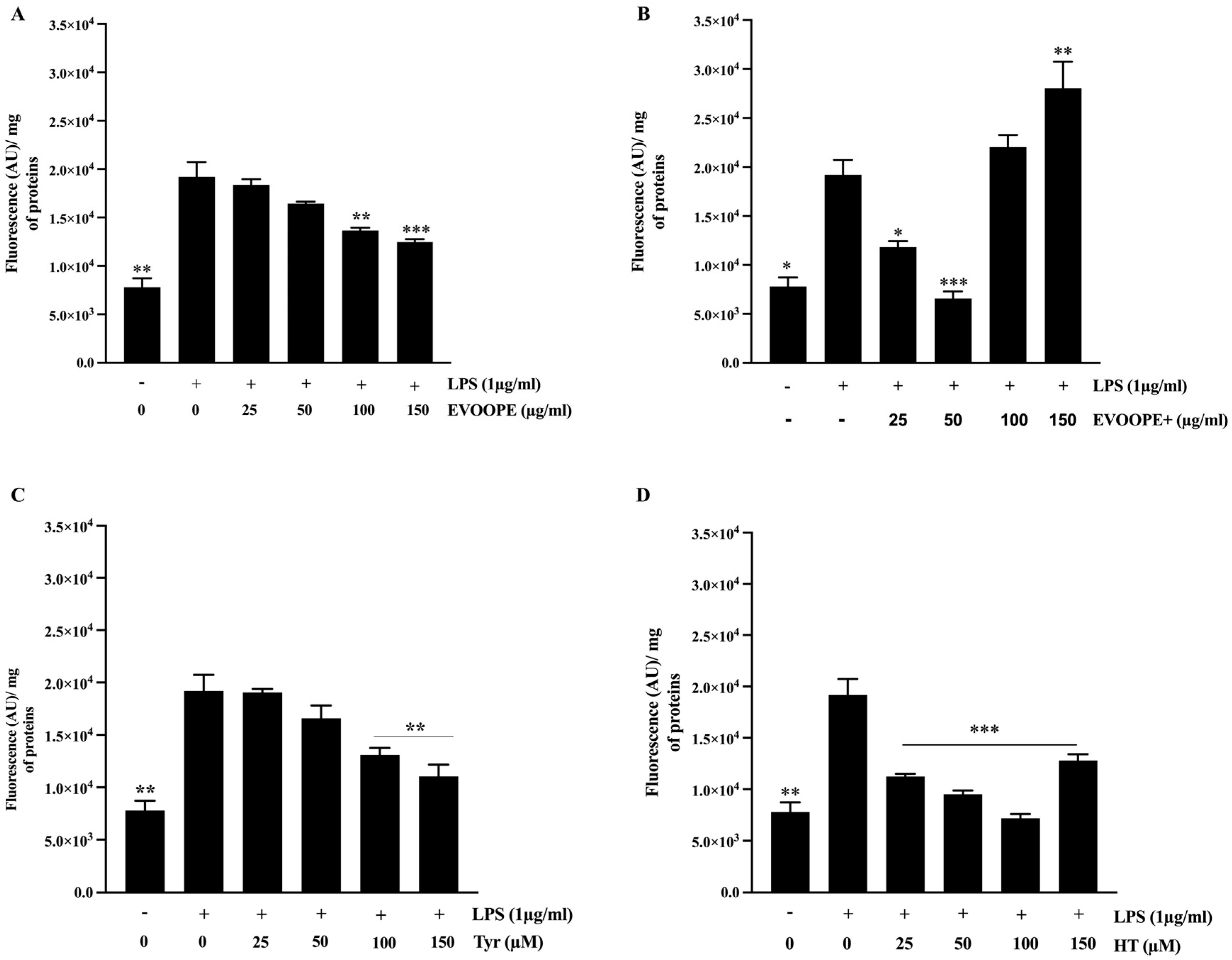 | EVOOPE+ | - | 129.68 ± 4.25% *** | 122.36 ± 0.17% ** | 107.85 ± 1.93% | 78.77 ± 2.14% ** | - | - | - | - |