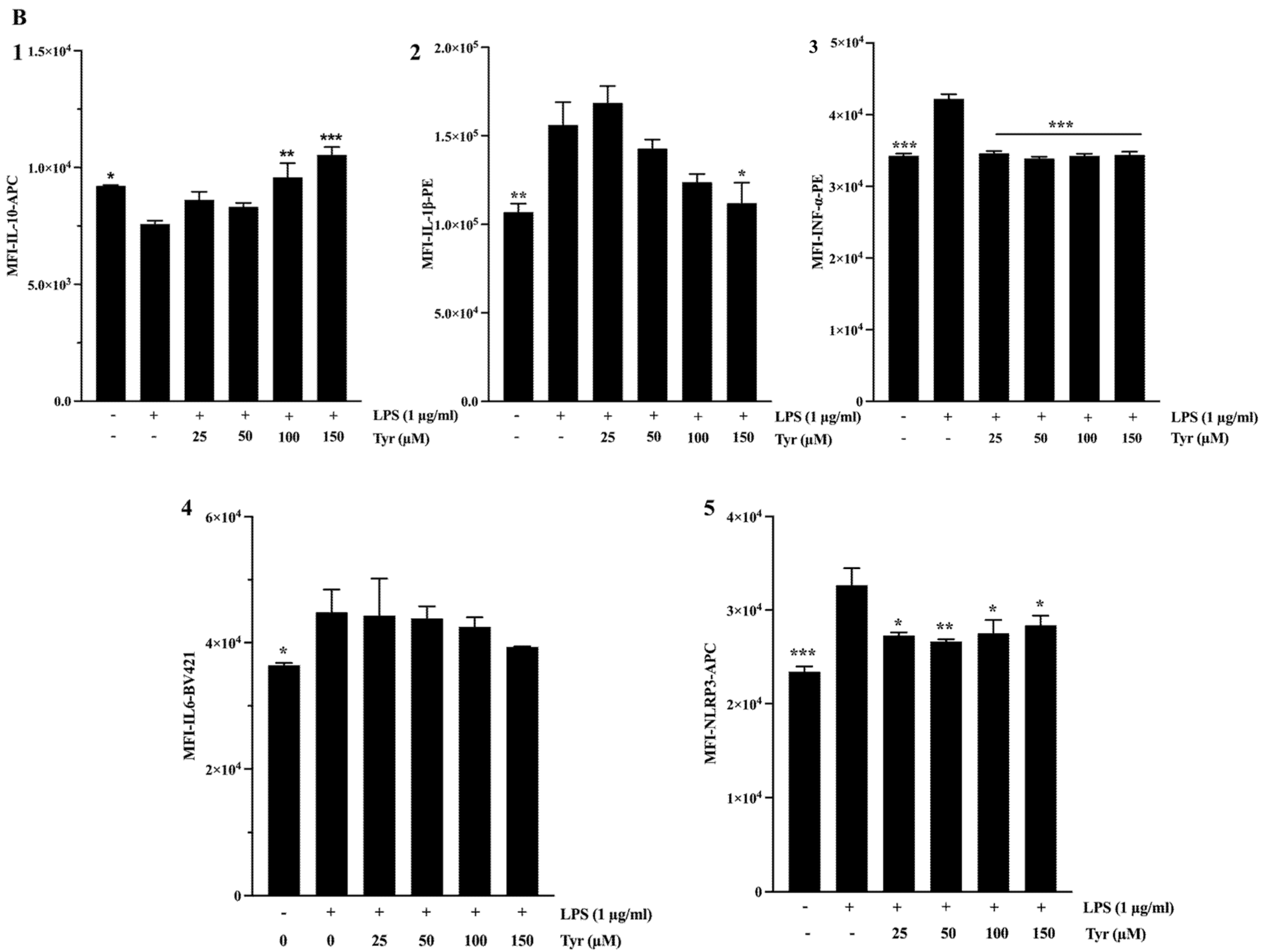 | Tyr | - | - | - | - | - | 121.28 ± 3.37% ** | 117.47 ± 2.06% * | 109.29 ± 1.62% | 106.83 ± 3% |