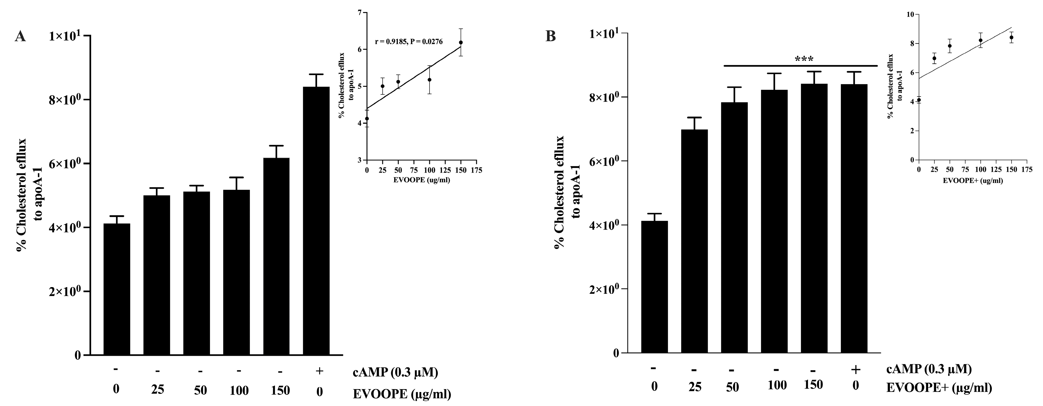 - Berrougui, H.; Ikhlef, S.; Khalil, A. Extra Virgin Olive Oil Polyphenols Promote Cholesterol Efflux and Improve HDL Functionality. Evidence-Based Complement. Altern. Med. 2015, 2015, 208062. [Google Scholar] [CrossRef] [PubMed]