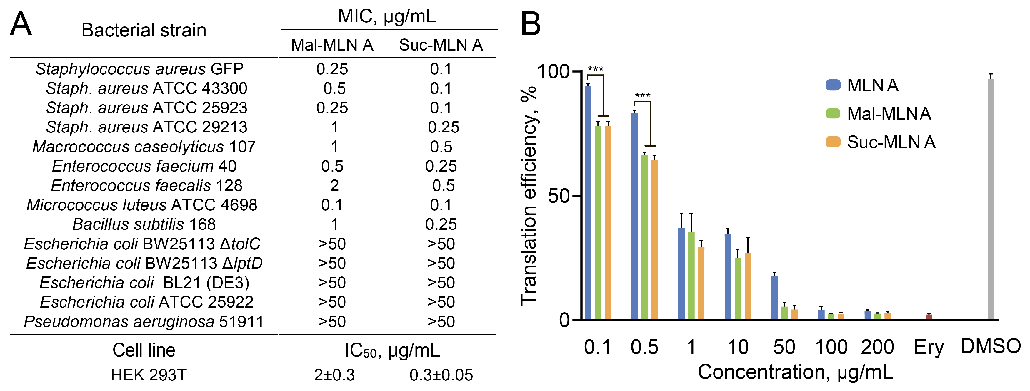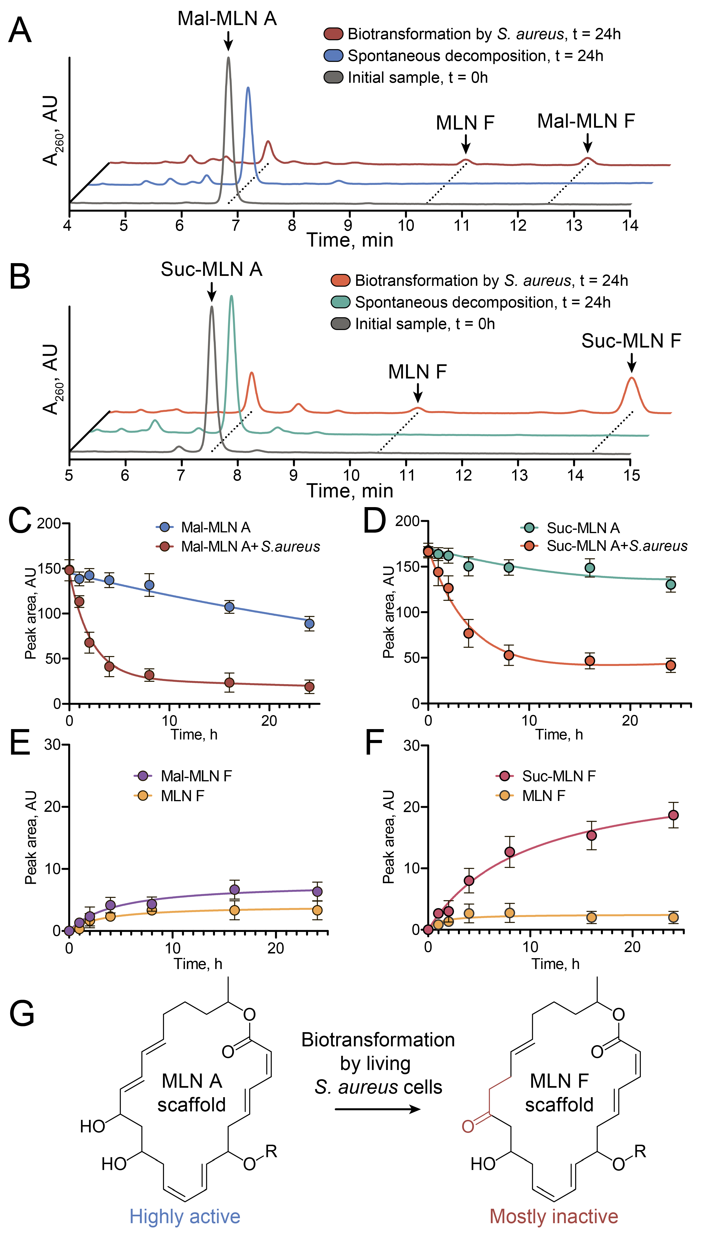 4.10. Biotransformation of suc-MLN A and mal-MLN A by Staphylococcus aureus