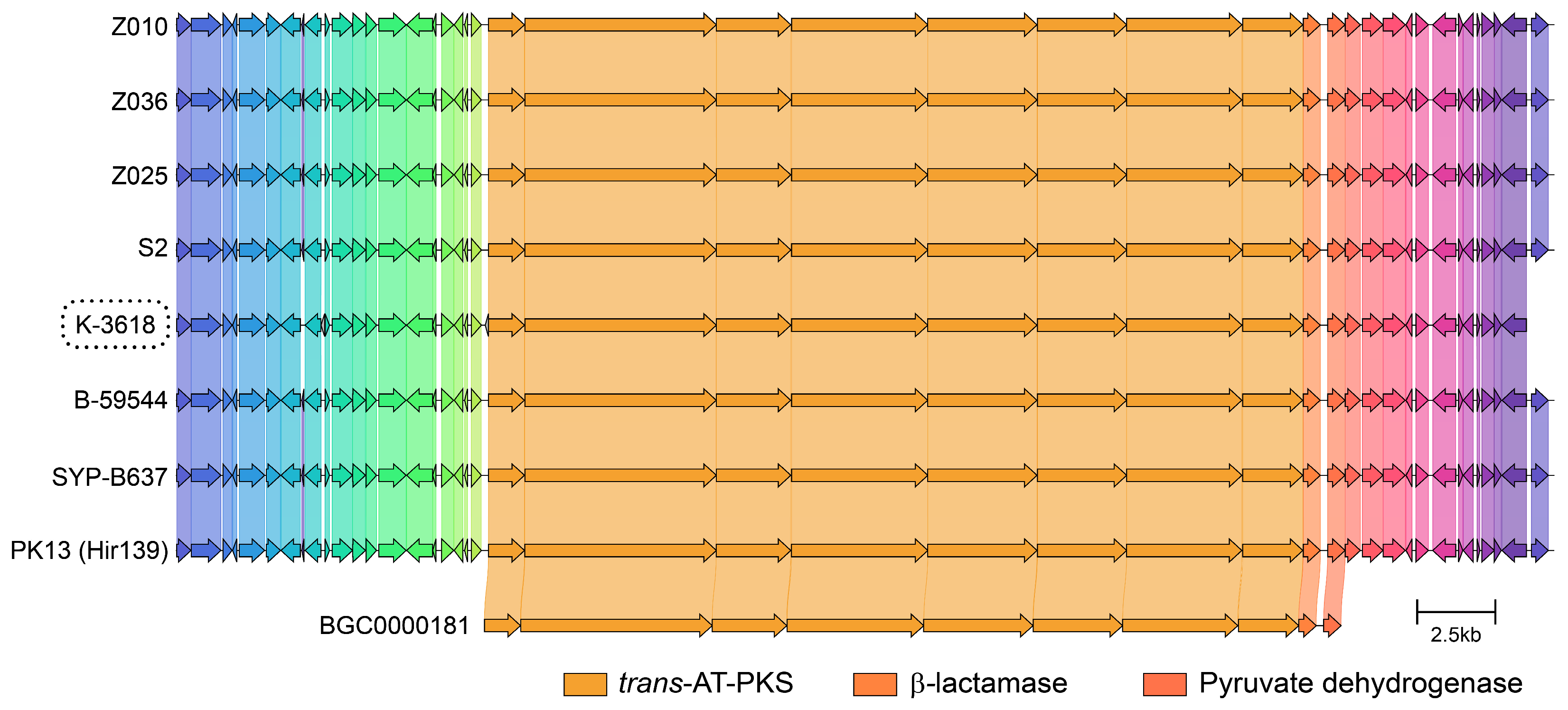 - Gilchrist, C.L.M.; Chooi, Y.-H. Clinker & Clustermap.Js: Automatic Generation of Gene Cluster Comparison Figures. Bioinformatics 2021, 37, 2473–2475. [Google Scholar] [CrossRef]
