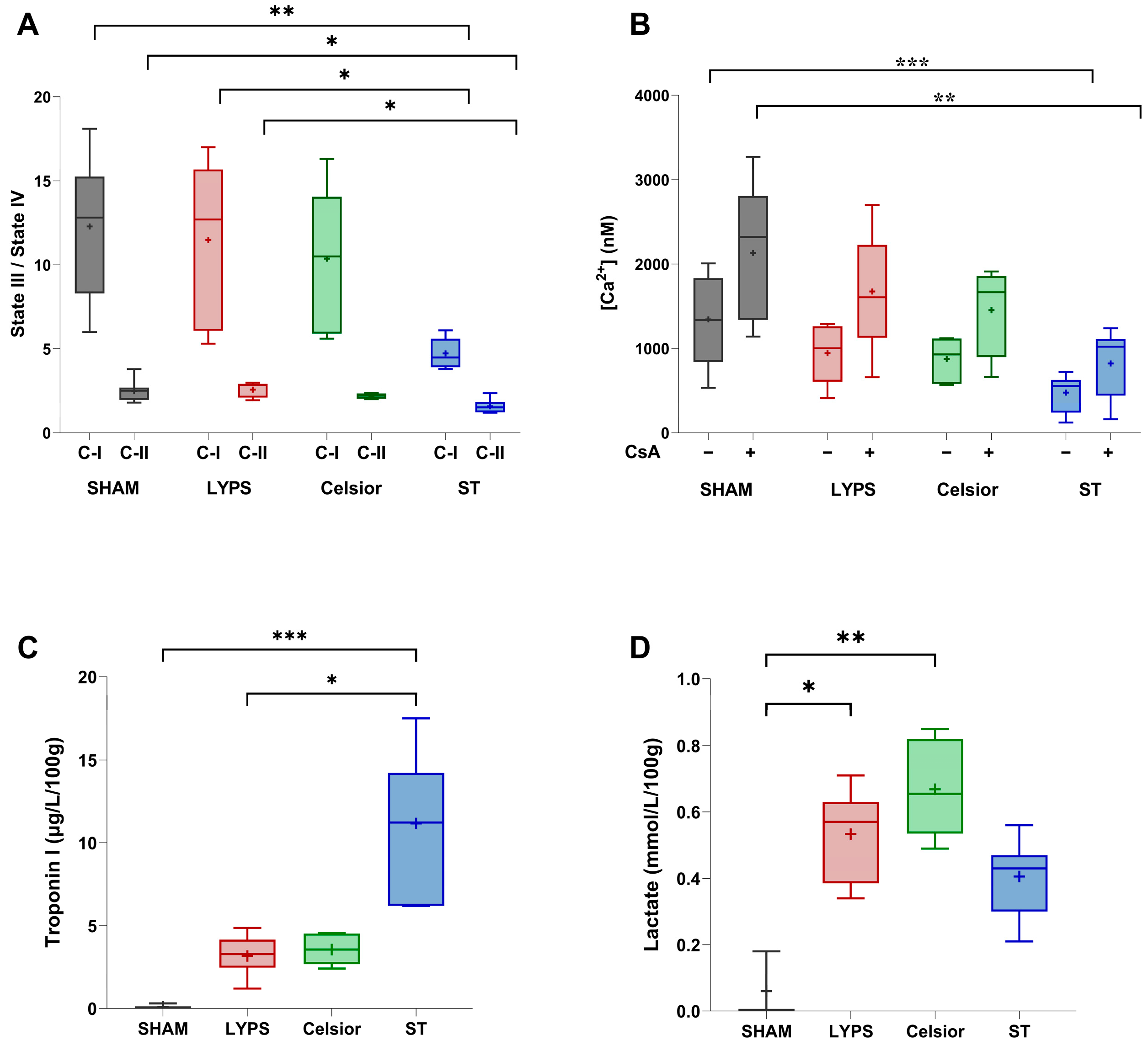 4.2. Ex Vivo Experiments (Pig Heart Preservation–Reperfusion Sequence)