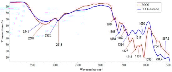 Comparison of FTIR peaks between EGCG and EGCG-SeNPs.