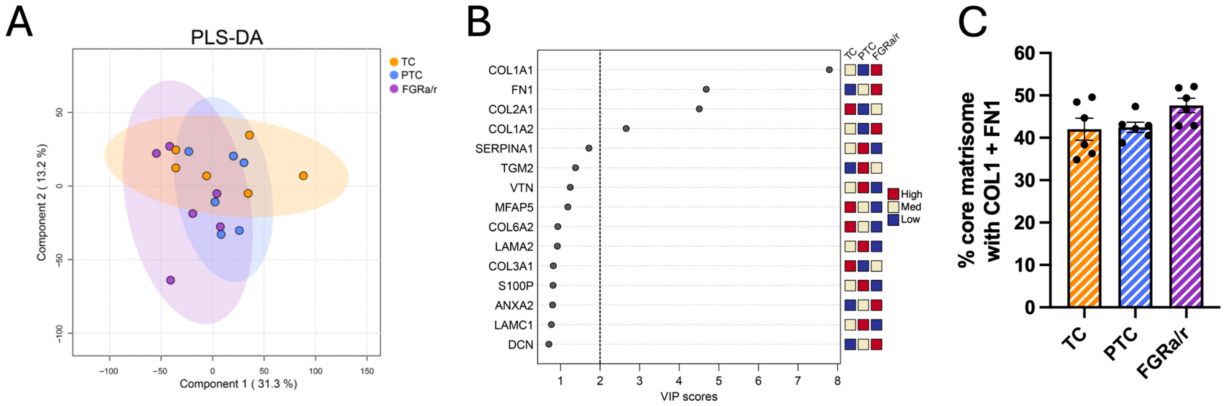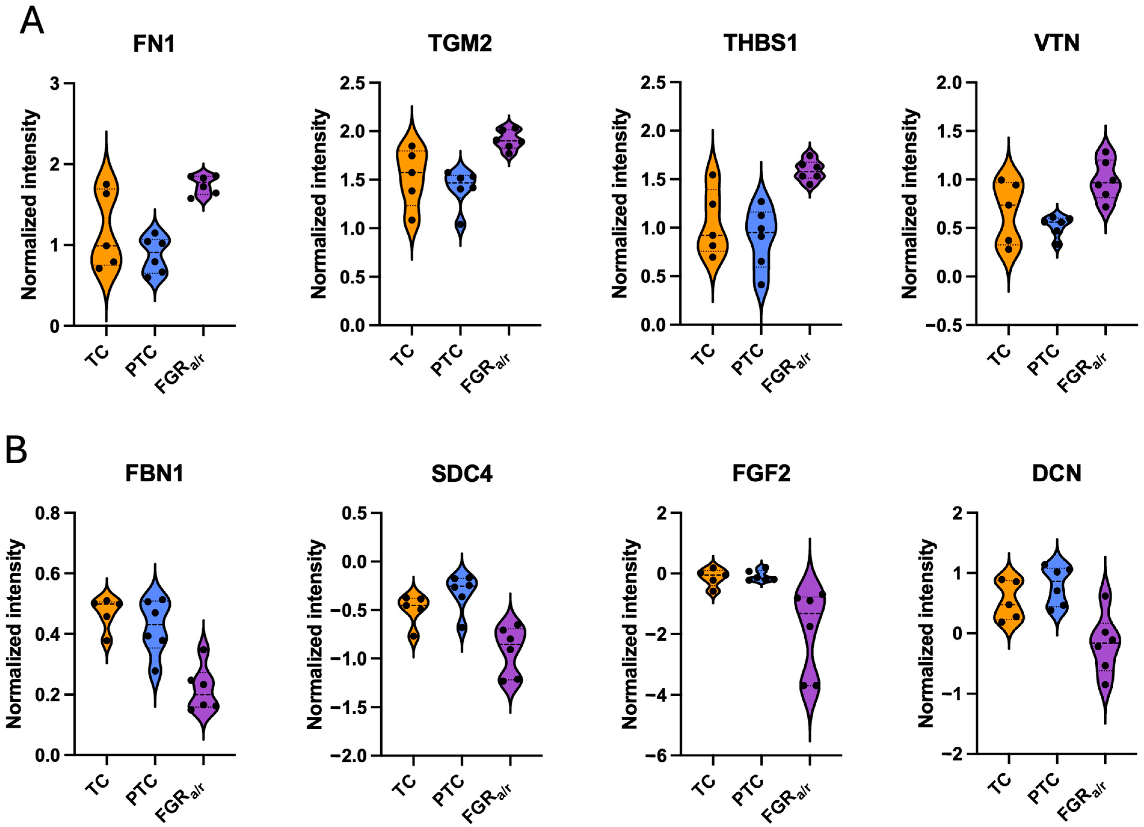 | iECM Proteins Significantly Lower in FGRa/r as Compared to Both TC and PTC | |||