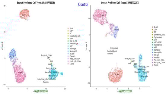 - Stuart, T.; Butler, A.; Hoffman, P.; Hafemeister, C.; Papalexi, E.; Mauck, W.M., III; Hao, Y.; Stoeckius, M.; Smibert, P.; Satija, R. Comprehensive Integration of Single-Cell Data. Cell 2019, 177, 1888–1902.e1821. [Google Scholar] [CrossRef]