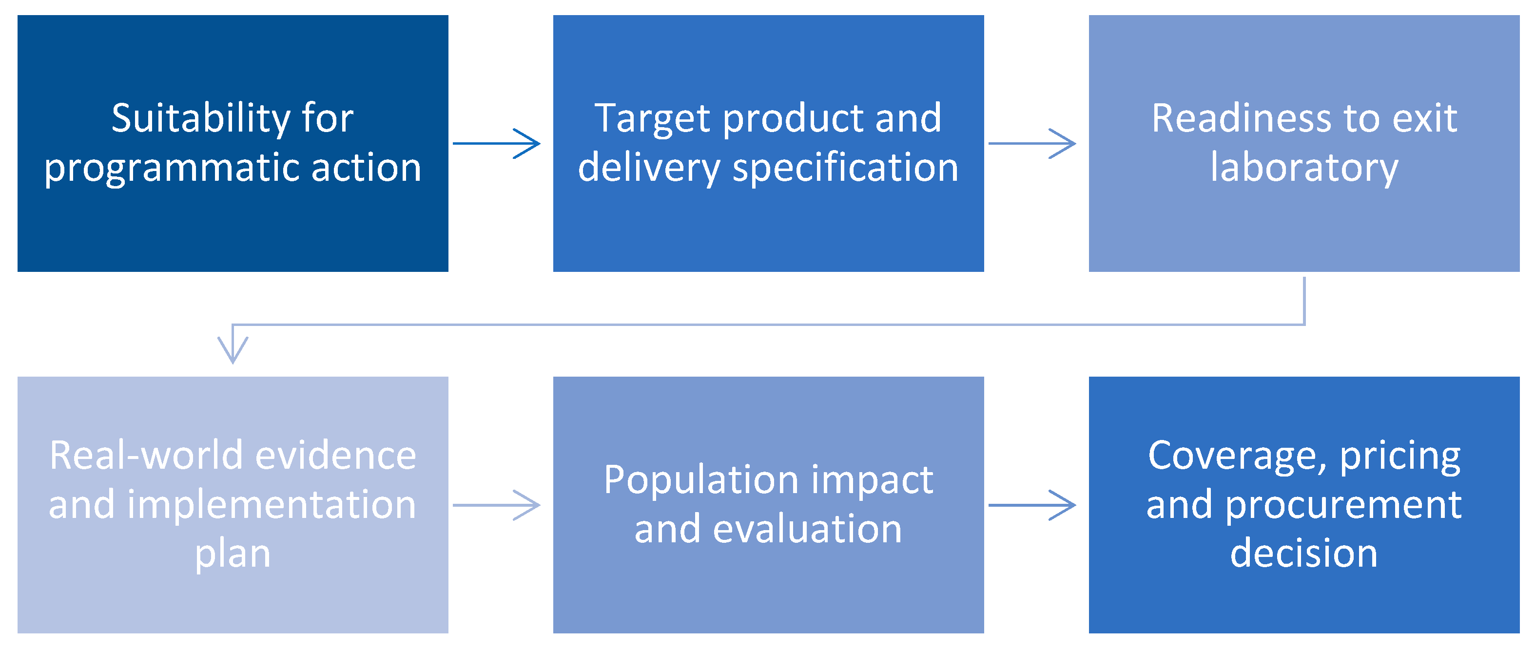 - What does a public-health–ready product look like? Population use requires a target product profile that covers both the intervention and its delivery. Specify intended use, target population, performance thresholds, safety requirements, contraindications, and the minimum evidence for adoption. For diagnostics and triage tools, benchmarks can draw on WHO ASSURED that include connectivity and simple specimen collection. For preventive and therapeutic products, define expected effect size or noninferiority, dosing, durability of benefit, and acceptable adverse event rates, with clear linkage to existing care pathways [59].