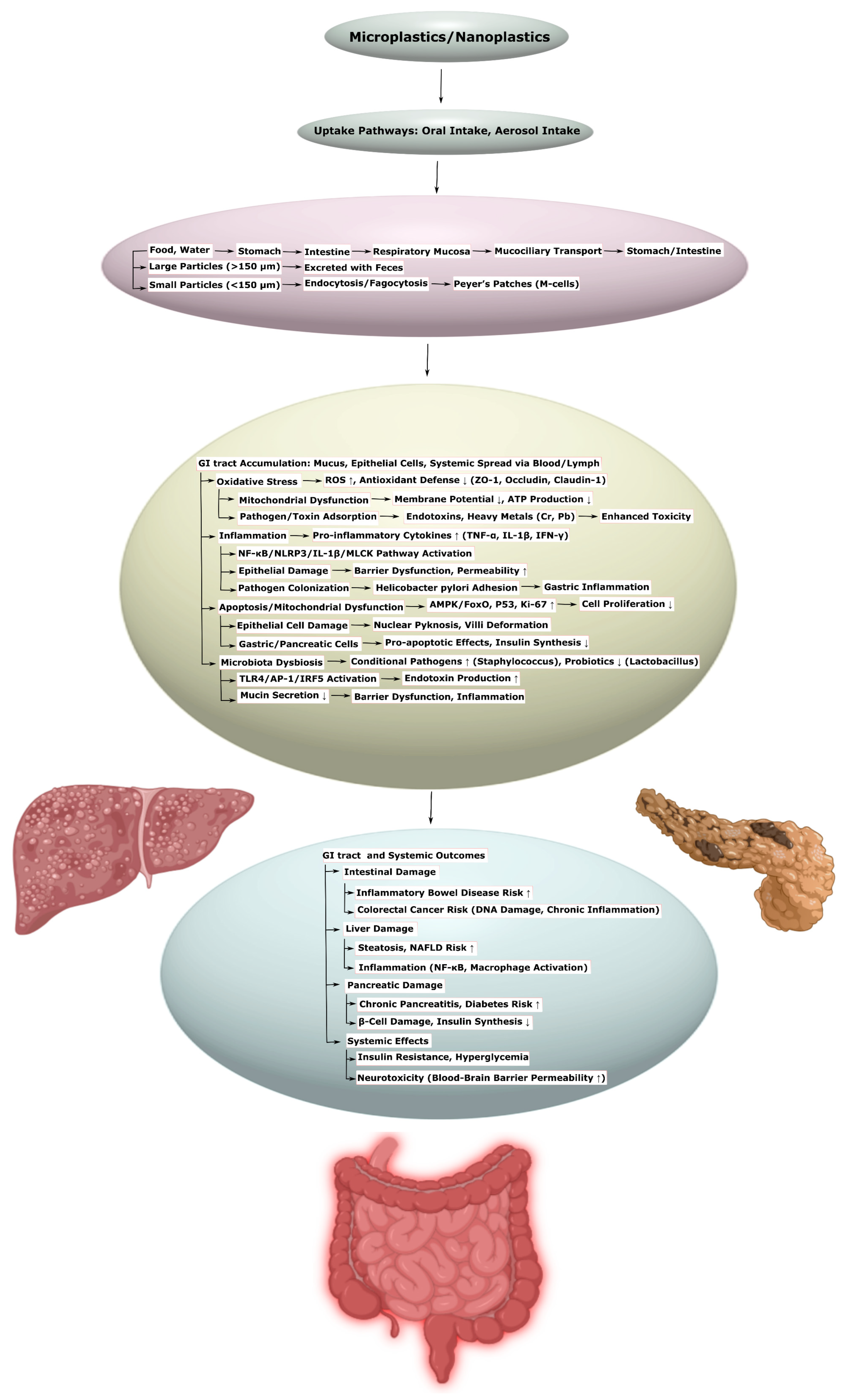 - Zhou, L.; Ran, L.; He, Y.; Huang, Y. Mechanisms of Microplastics on Gastrointestinal Injury and Liver Metabolism Disorder (Review). Mol. Med. Rep. 2025, 31, 98. [Google Scholar] [CrossRef]