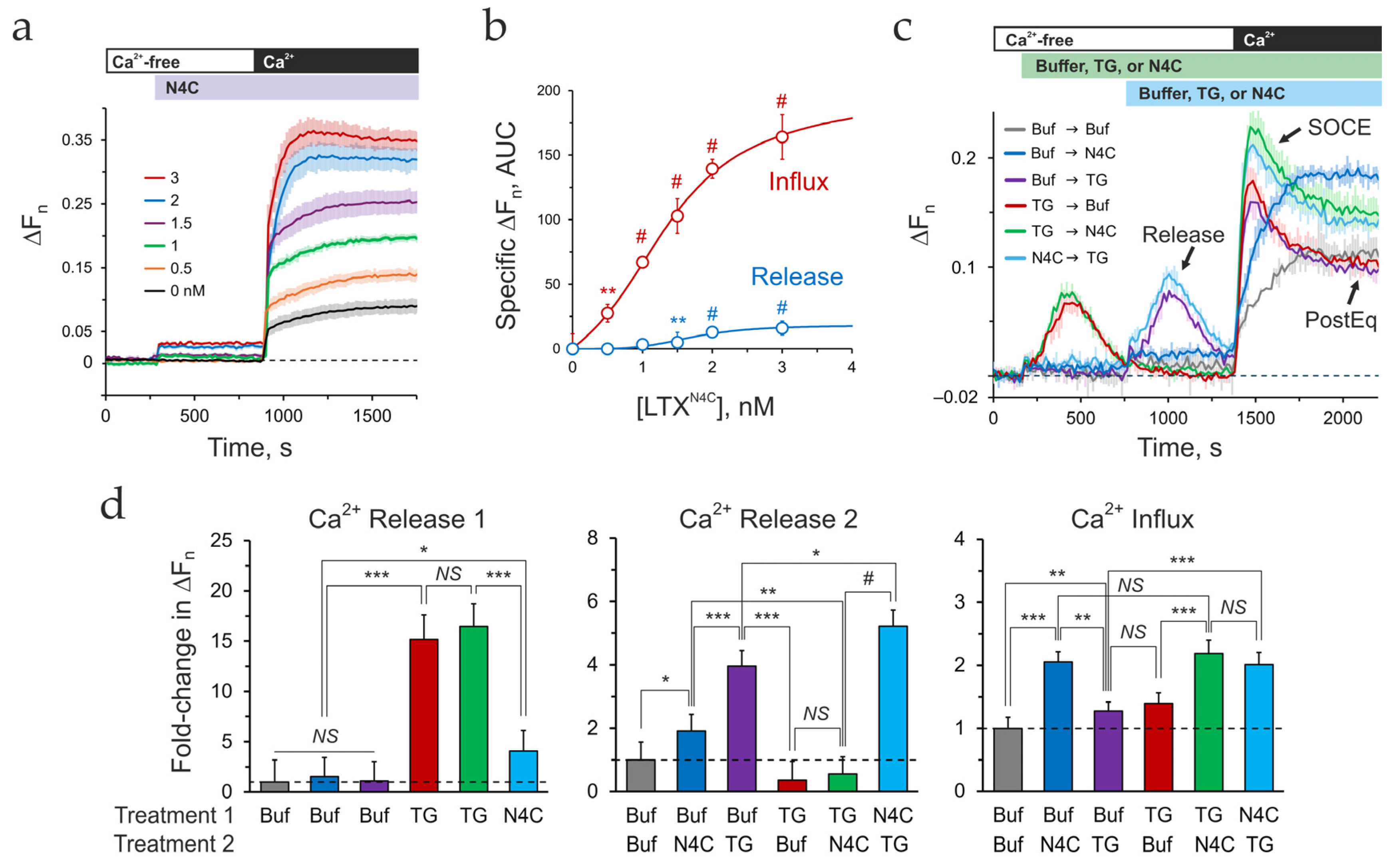 3.2. Deciphering the LTXN4C-Induced Calcium Signature