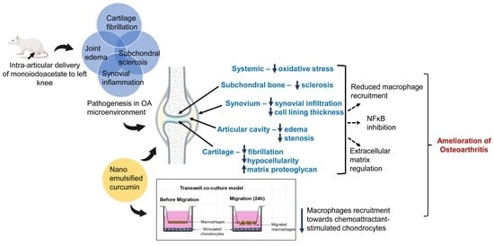 Chicago/Turabian StyleHridayanka, Kota Sri Naga, Shibsekhar Roy, Saikanth Varma, Navya Sree Boga, Archana Molangiri, Pradeep B. Patil, Myadara Srinivas, Asim K. Duttaroy, and Sanjay Basak. 2025. "Intra-Articular Delivery of Nanoemulsified Curcumin Ameliorates Joint Degeneration in a Chemically Induced Model of Osteoarthritis" International Journal of Molecular Sciences 26, no. 22: 11212. https://doi.org/10.3390/ijms262211212