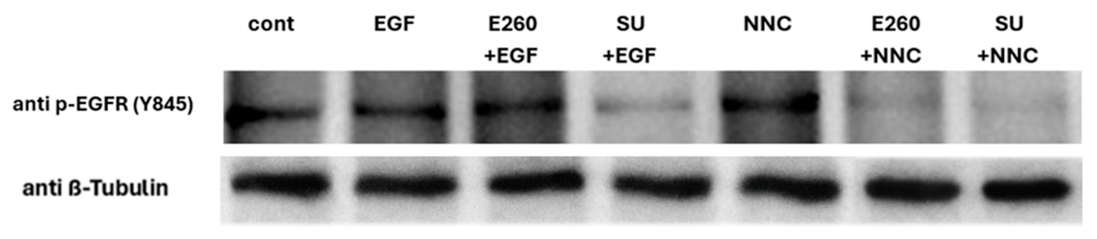 - Biscardi, J.S.; Maa, M.C.; Tice, D.A.; Cox, M.E.; Leu, T.H.; Parsons, S.J. c-Src-mediated phosphorylation of the epidermal growth factor receptor on Tyr845 and Tyr1101 is associated with modulation of receptor function. J. Biol. Chem. 1999, 274, 8335–8343. [Google Scholar] [CrossRef]