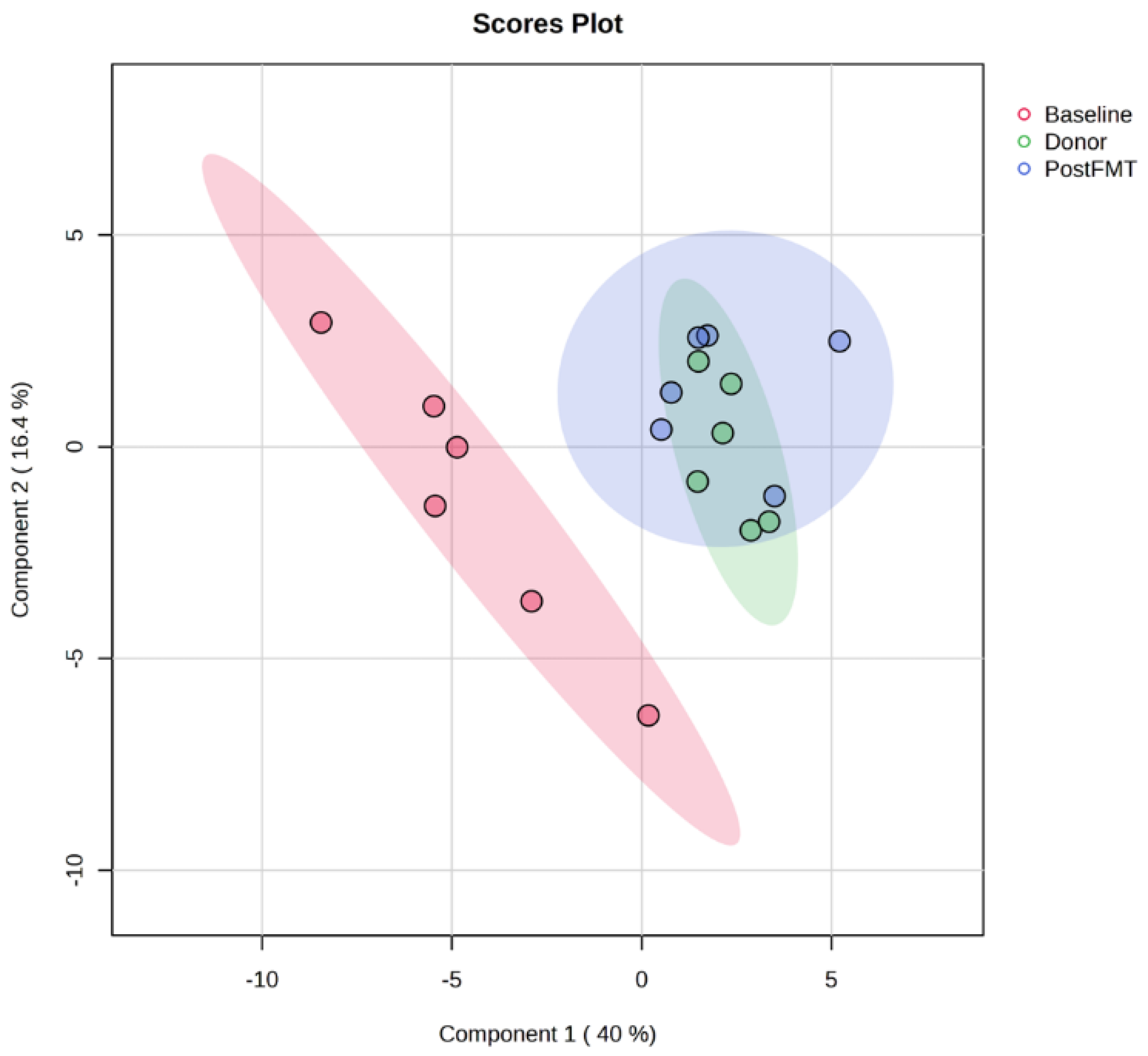 2.1. Distinct Metabolomic Profiles in Pre-FMT, Post-FMT, and Donor Samples by OrbiSIMS