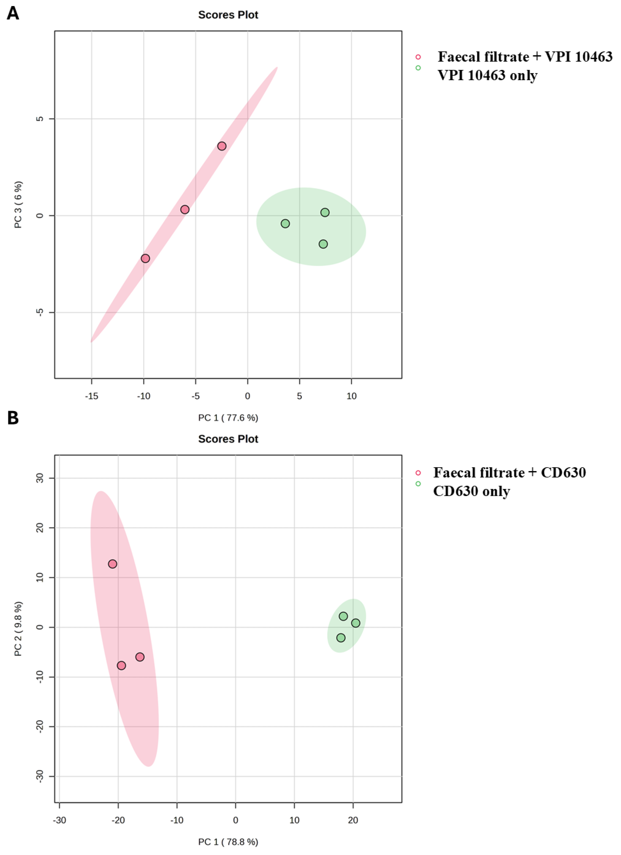 2.7. Faecal Filtrate Treatment Induces Strain-Specific Metabolic Reprogramming in C. difficile