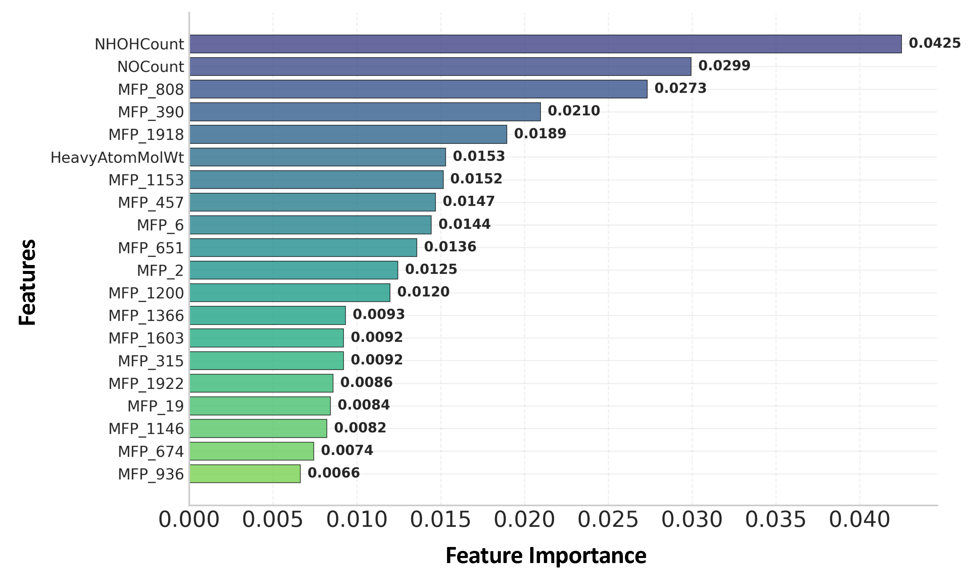 2.3. Feature Ranking and Interpretation of Key Molecular Features