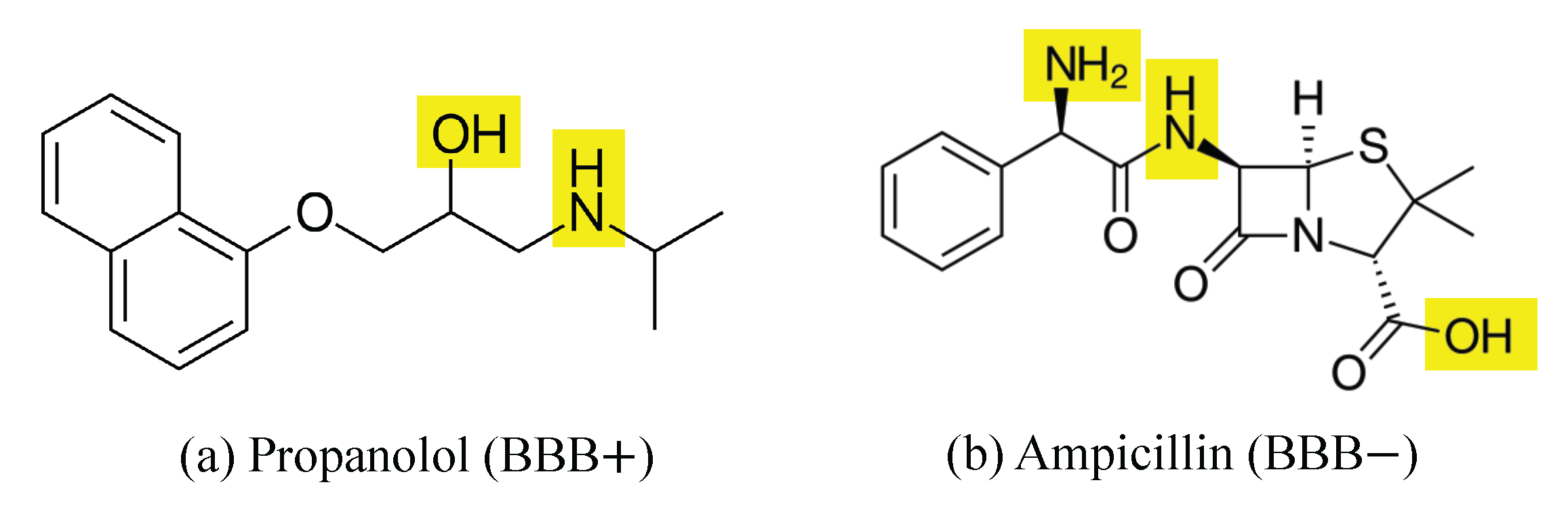 - Shityakov, S.; Neuhaus, W.; Dandekar, T.; Förster, C. Analysing molecular polar surface descriptors to predict blood–brain barrier permeation. Int. J. Comput. Biol. Drug Des. 2013, 6, 146–156. [Google Scholar] [CrossRef] [PubMed]