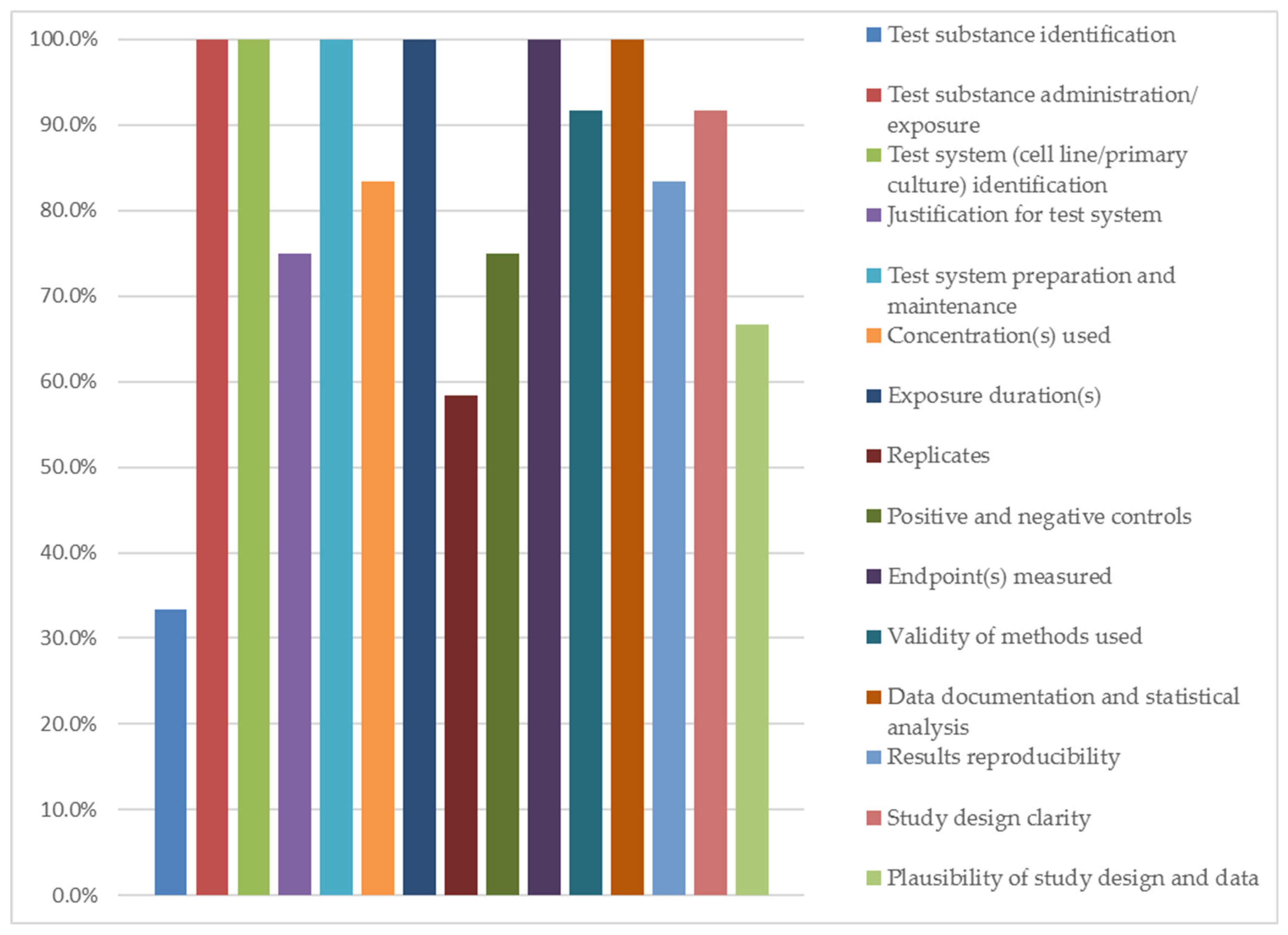 - Schneider, K.; Schwarz, M.; Burkholder, I.; Kopp-Schneider, A.; Edler, L.; Kinsner-Ovaskainen, A.; Hartung, T.; Hoffmann, S. “ToxRTool”, a new tool to assess the reliability of toxicological data. Toxicol. Lett. 2009, 189, 138–144. [Google Scholar] [CrossRef]