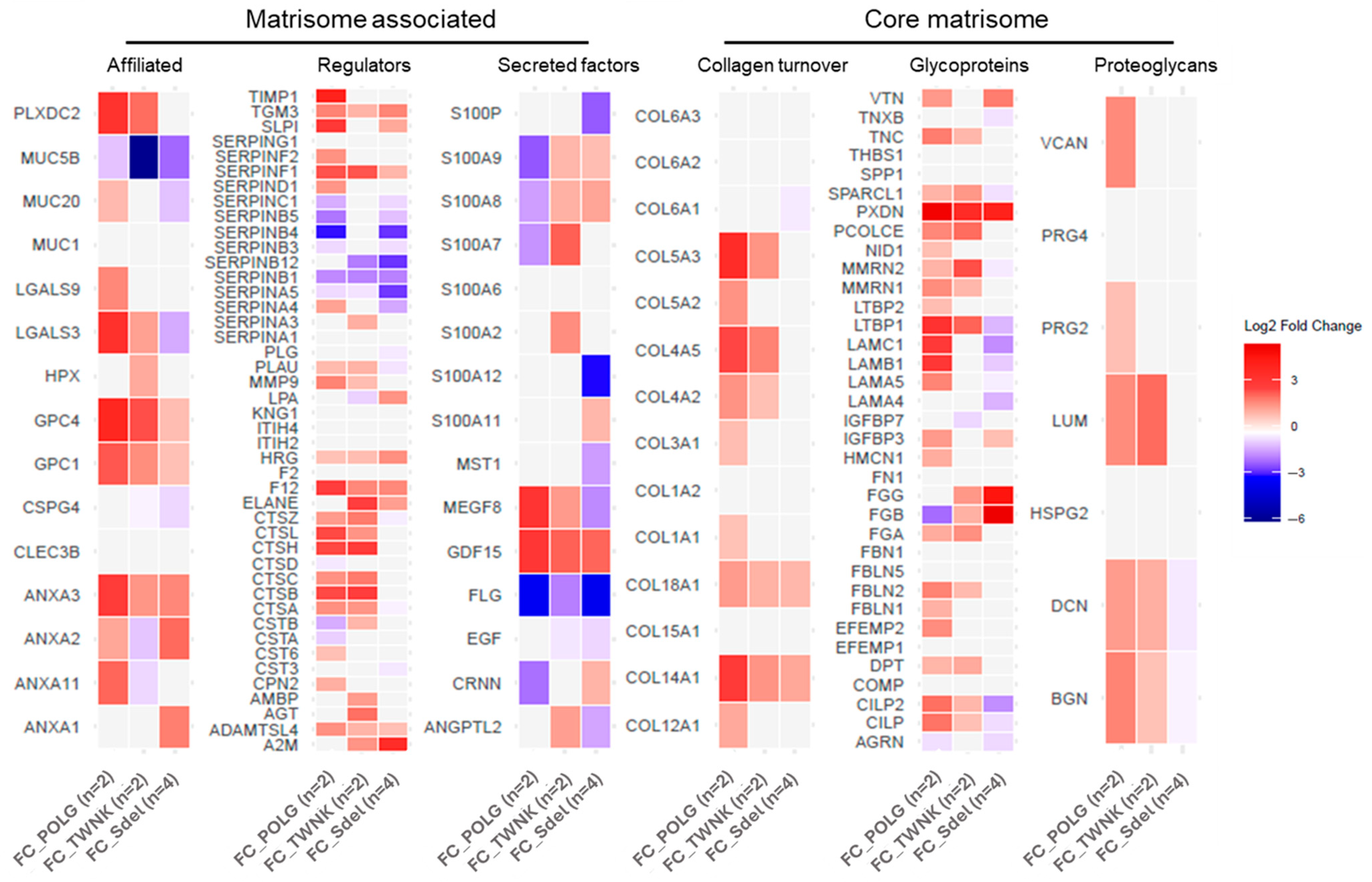 Figure 3A) described a dysregulated condition across all the matrisome categories in PEO (
