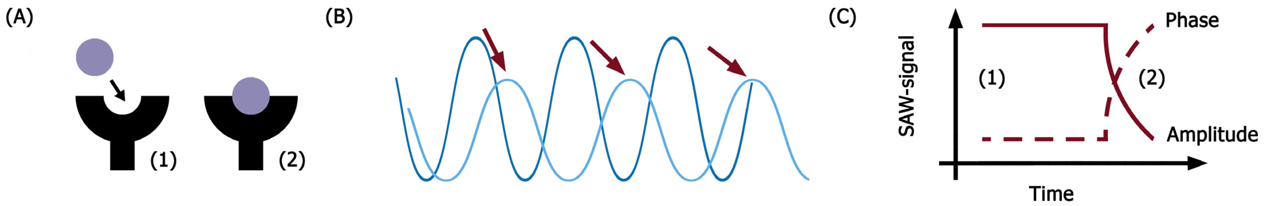 - Perpeet, M.; Glass, S.; Gronewold, T.M.; Kiwitz, A.; Malavé, A.; Stoyanov, I.; Tewes, M.; Quandt, E. SAW sensor system for marker-free molecular interaction analysis. Anal. Lett. 2006, 39, 1747–1757. [Google Scholar] [CrossRef]