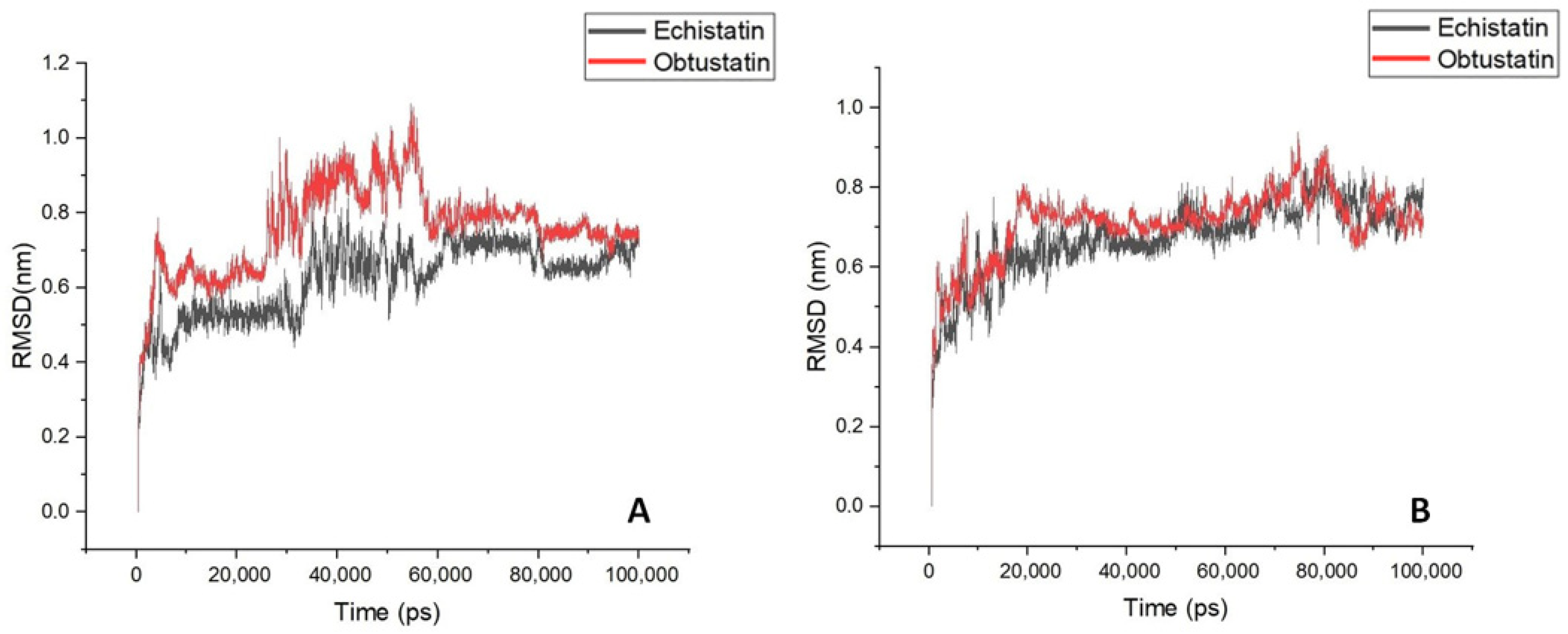- Daidone, I.; Aschi, M.; Patamia, M.; Bozzi, A.; Petruzzelli, R. Structural and dynamical properties of KTS-disintegrins: A comparison between Obtustatin and Lebestatin. Biopolymers 2013, 99, 47–54. [Google Scholar] [CrossRef]