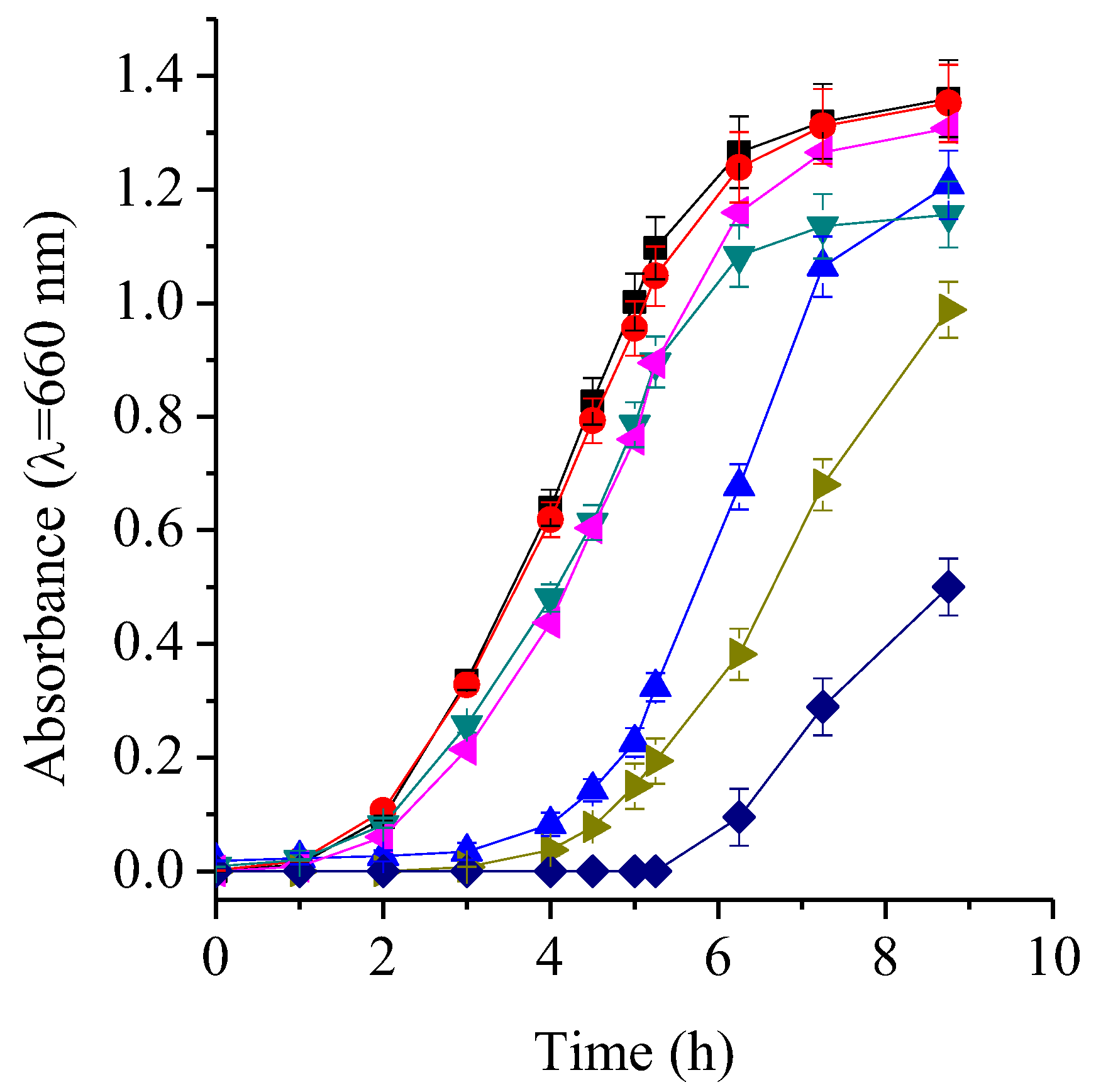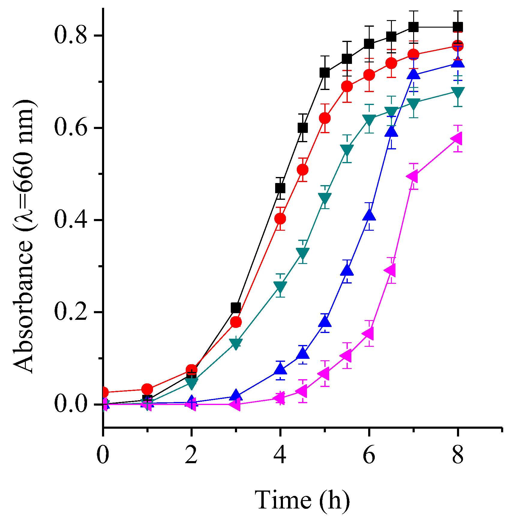 - Spesia, M.B.; Caminos, D.A.; Pons, P.; Durantini, E.N. Mechanistic insight of the photodynamic inactivation of Escherichia coli by a tetracationic zinc(II) phthalocyanine derivative. Photodiagn. Photodyn. Ther. 2009, 6, 52–61. [Google Scholar] [CrossRef] [PubMed]