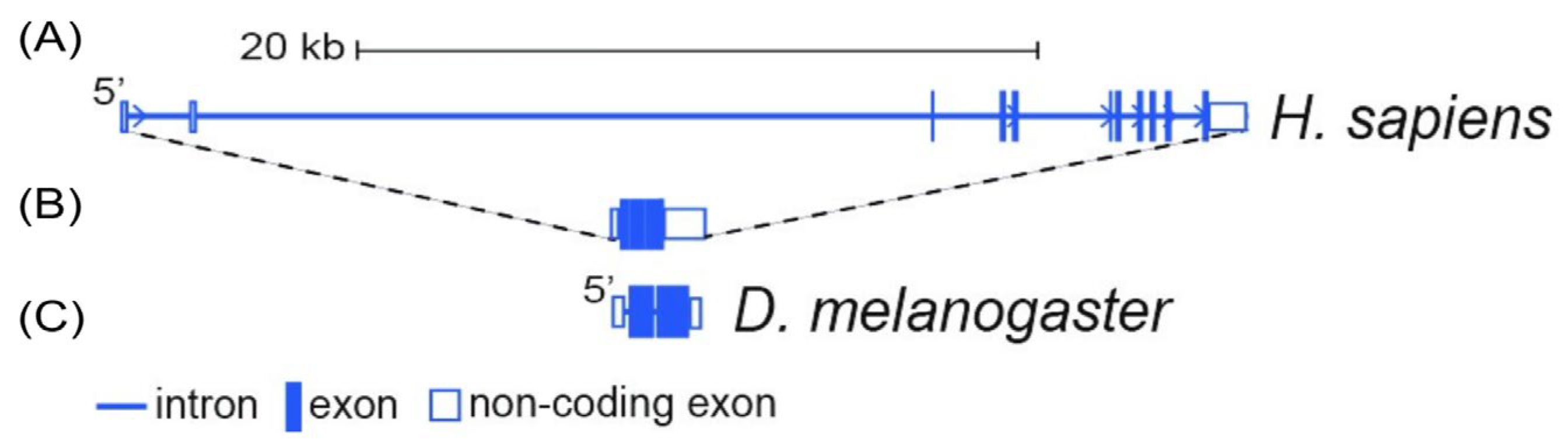 | Gene positions | chr1: 28 506 043-28 538 989 GRCh38/hg38 chr1:28 529 867-28 538 007 | chr3L:5 929 674-5 933 200 Release 6.54 |