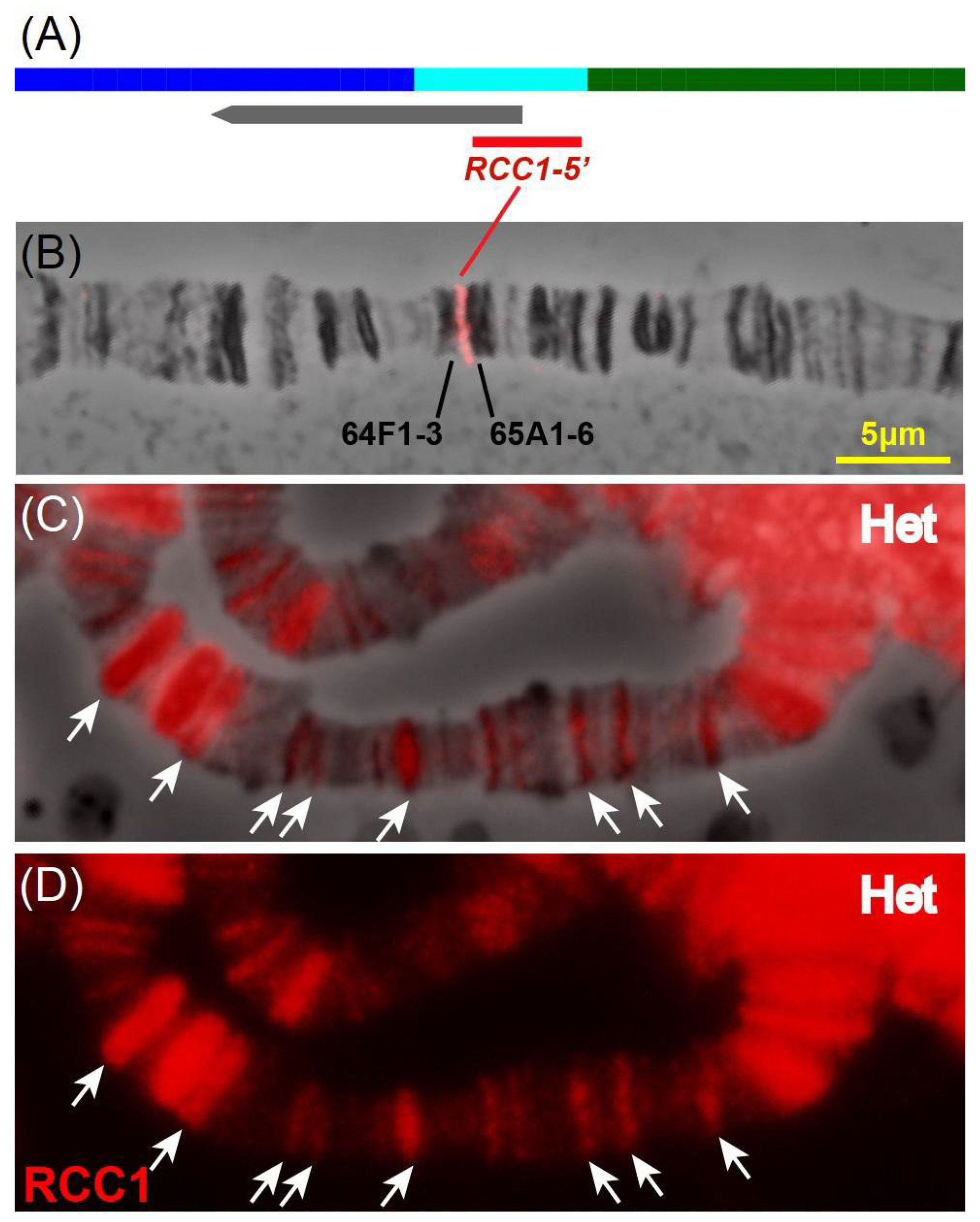 2.1. The Structure of the RCC1 Gene and Localization of the RCC1 Protein in Polytene Chromosomes of D. melanogaster