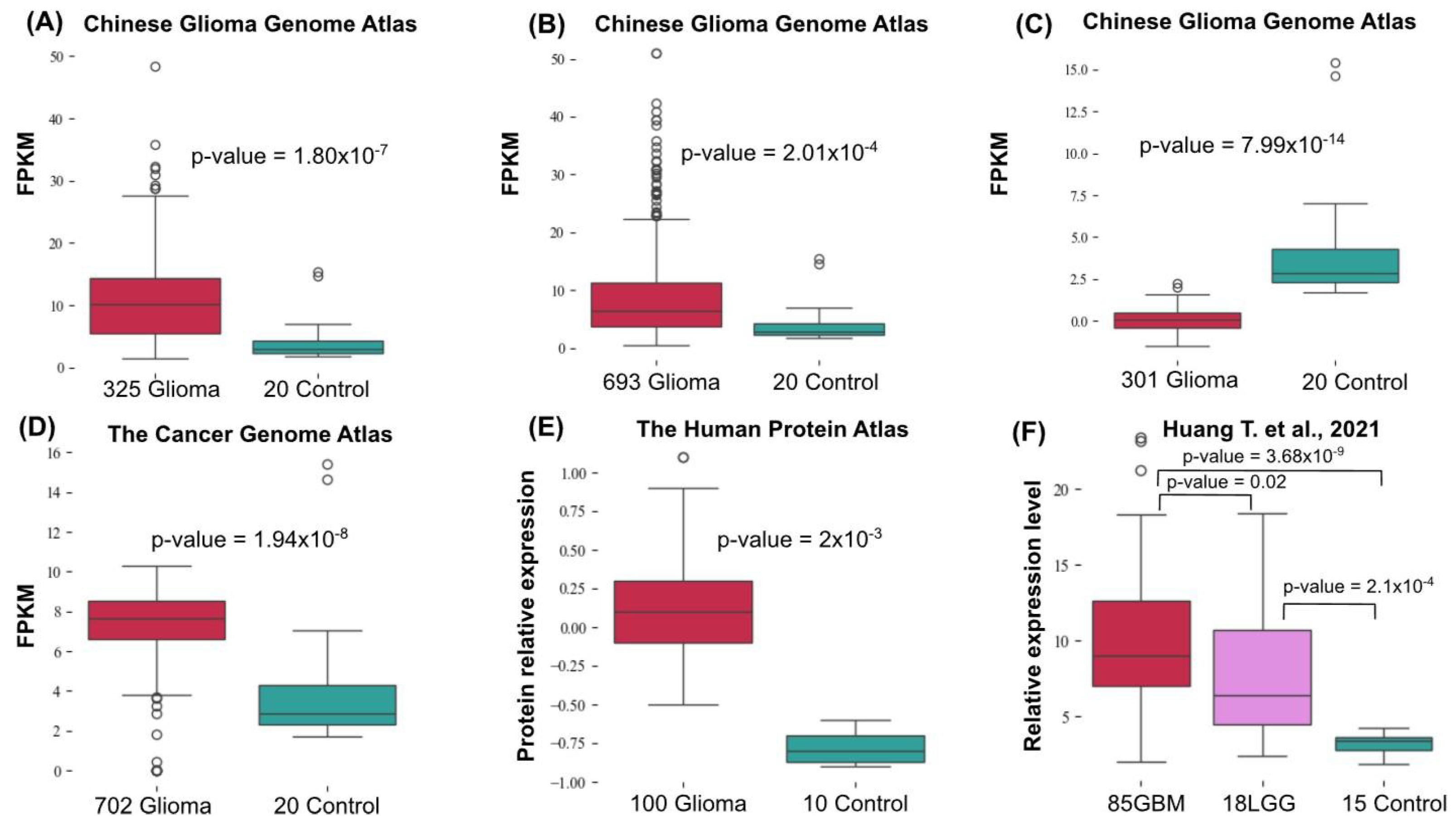 - Zhao, Z.; Zhang, K.N.; Wang, Q.; Li, G.; Zeng, F.; Zhang, Y.; Wu, F.; Chai, R.; Wang, Z.; Zhang, C.; et al. Chinese Glioma Genome Atlas (CGGA): A Comprehensive Resource with Functional Genomic Data from Chinese Glioma Patients. Genom. Proteom. Bioinform. 2021, 19, 1–12. [Google Scholar] [CrossRef] [PubMed]