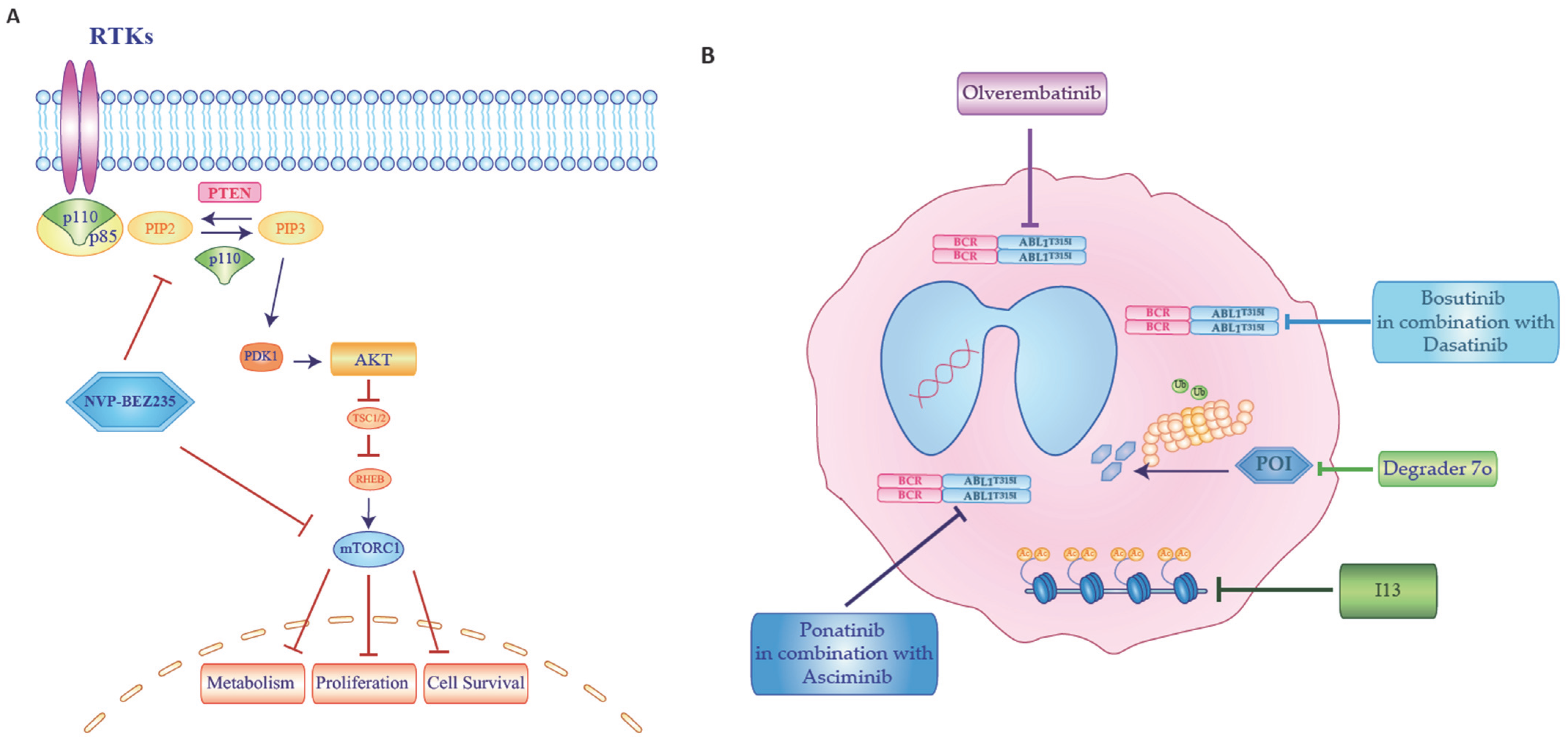 - Elgehama, A.; Wang, Y.; Yu, Y.; Zhou, L.; Chen, Z.; Wang, L.; Sun, L.; Gao, J.; Yu, B.; Shen, Y.; et al. Targeting the PTP1B-BCR-ABL1 interaction for the degradation of T315I mutant BCR-ABL1 in chronic myeloid leukemia. Cancer Sci. 2023, 114, 247–258. [Google Scholar] [CrossRef] [PubMed]