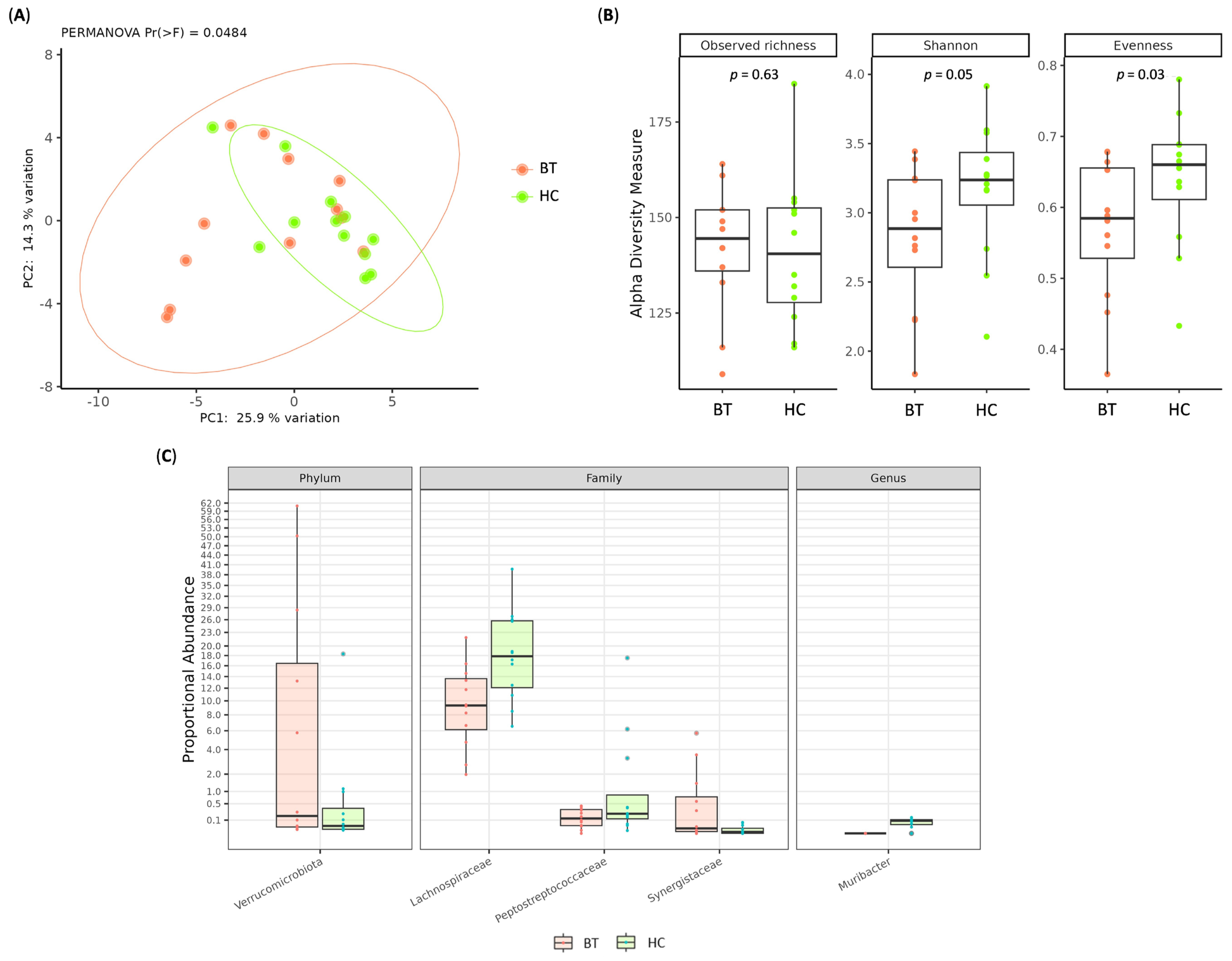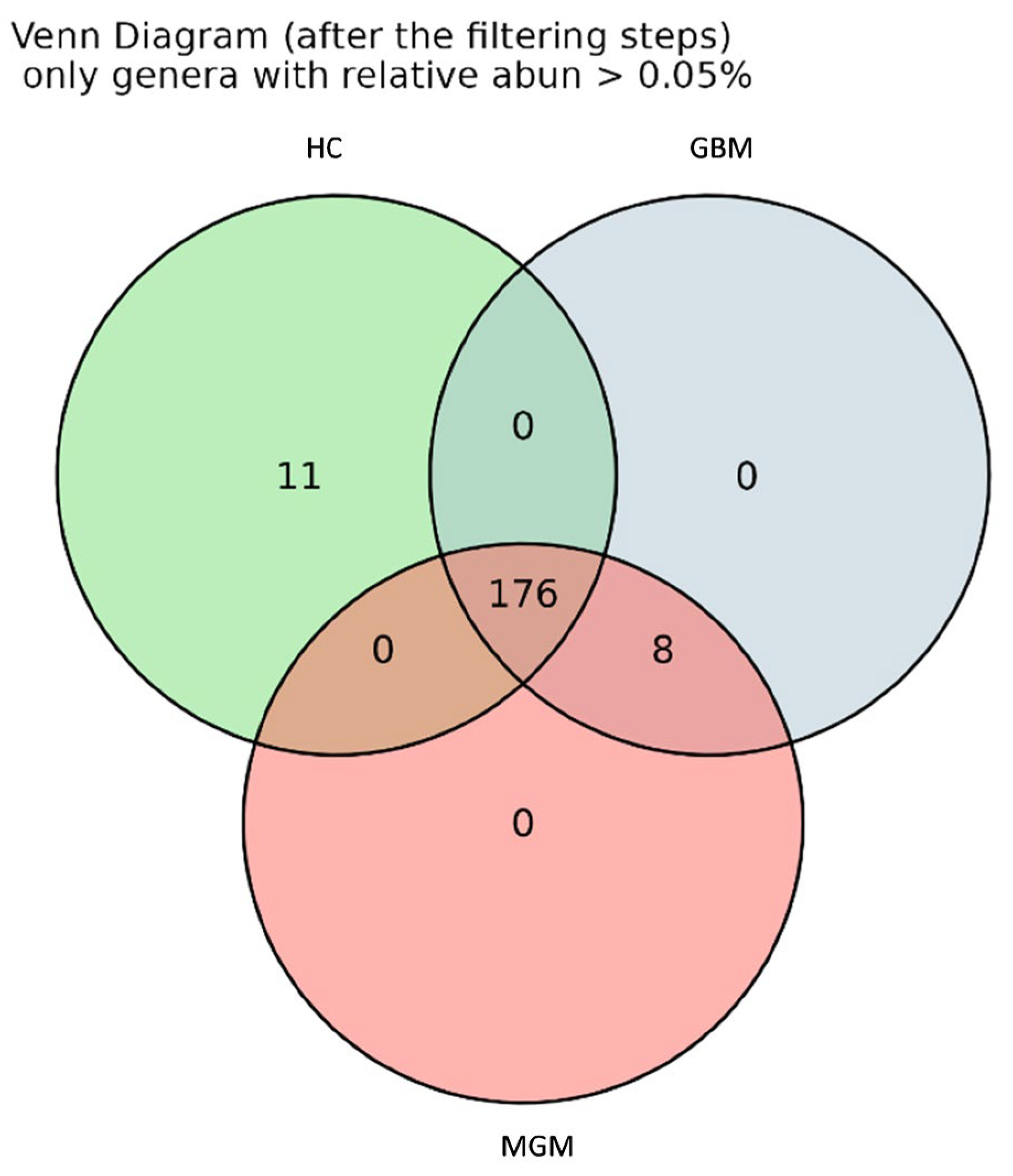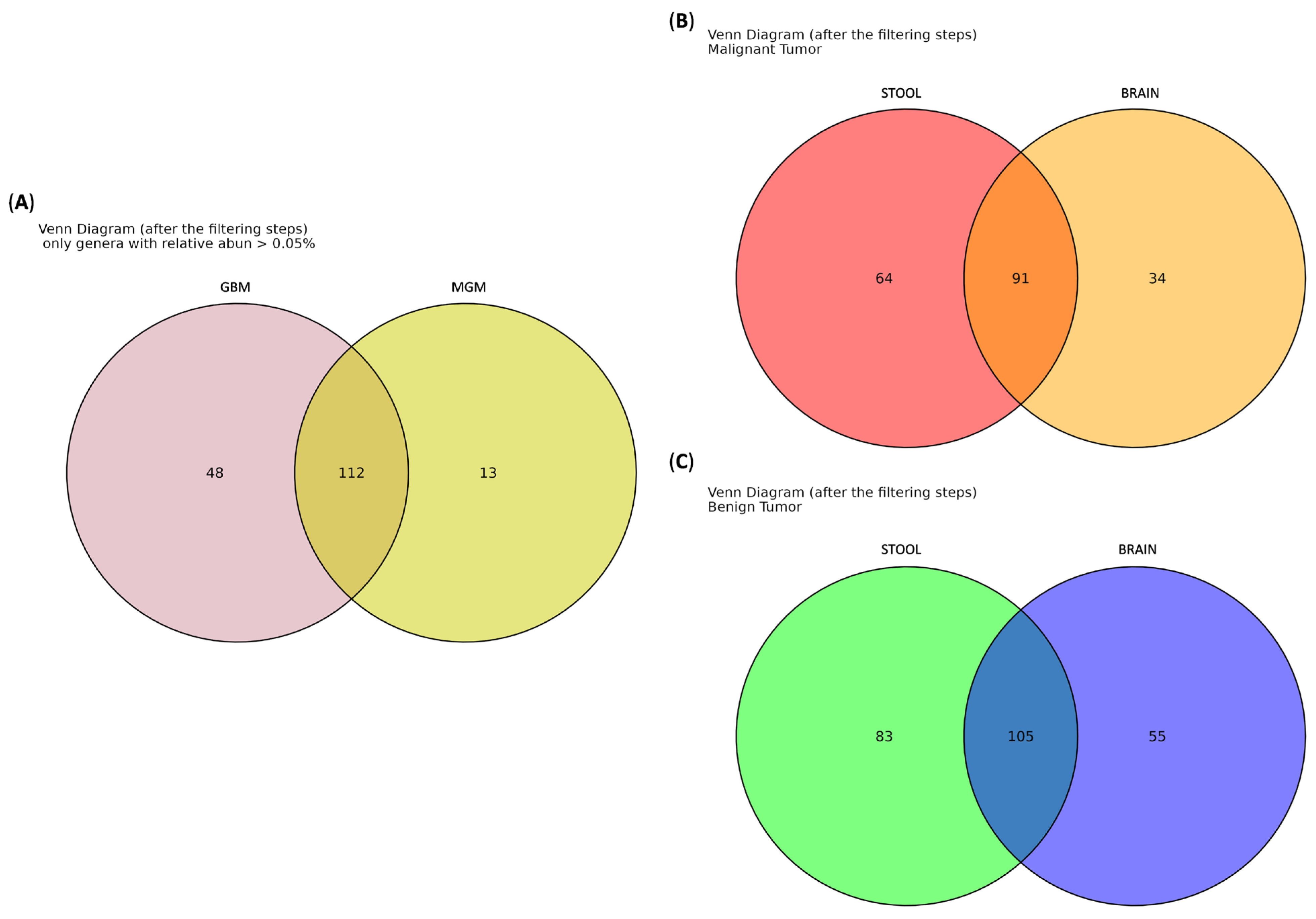 - Jiang, H.; Zeng, W.; Zhang, X.; Pei, Y.; Zhang, H.; Li, Y. The role of gut microbiota in patients with benign and malignant brain tumors: A pilot study. Bioengineered 2022, 13, 7847–7859. [Google Scholar] [CrossRef] [PubMed]