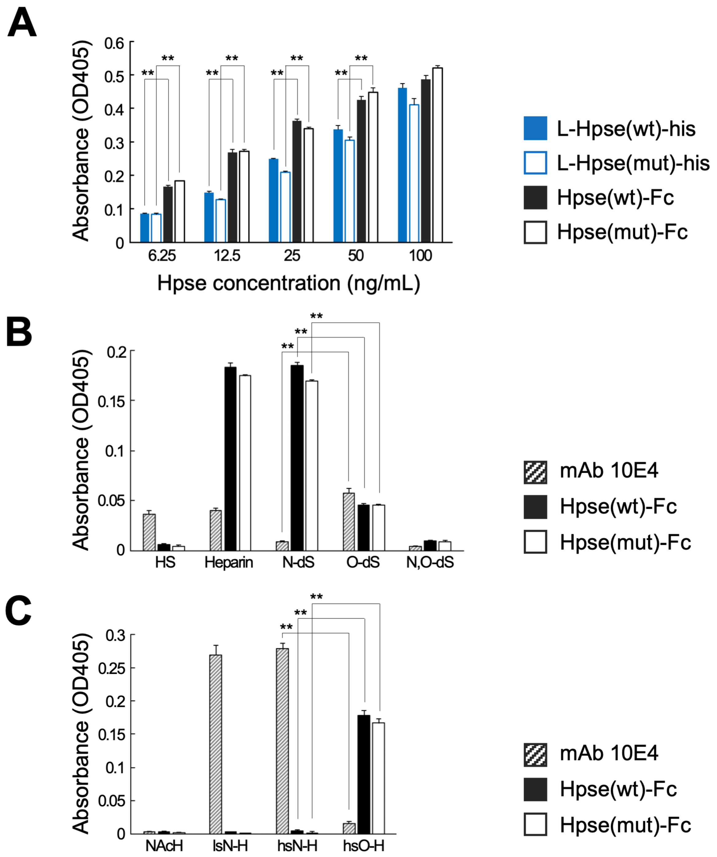 2.2. Hpse-Fc Chimeric Proteins Preferentially Bound to O-Sulfated GAGs
