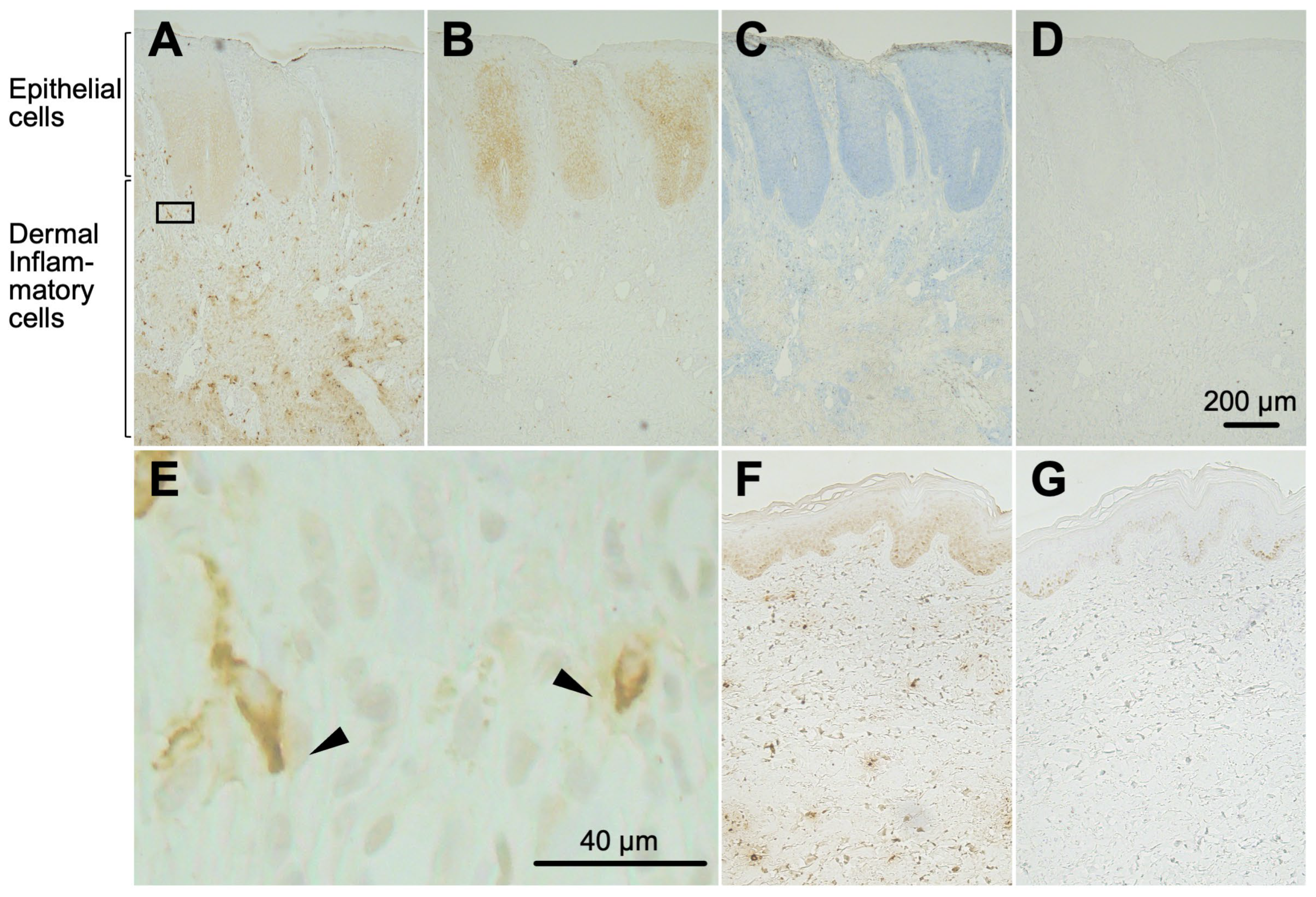 2.4. Hpse-Fc Chimeric Proteins Bound to Epidermal Cells and Dermal Inflammatory Cells in Atopic Dermatitis Skin