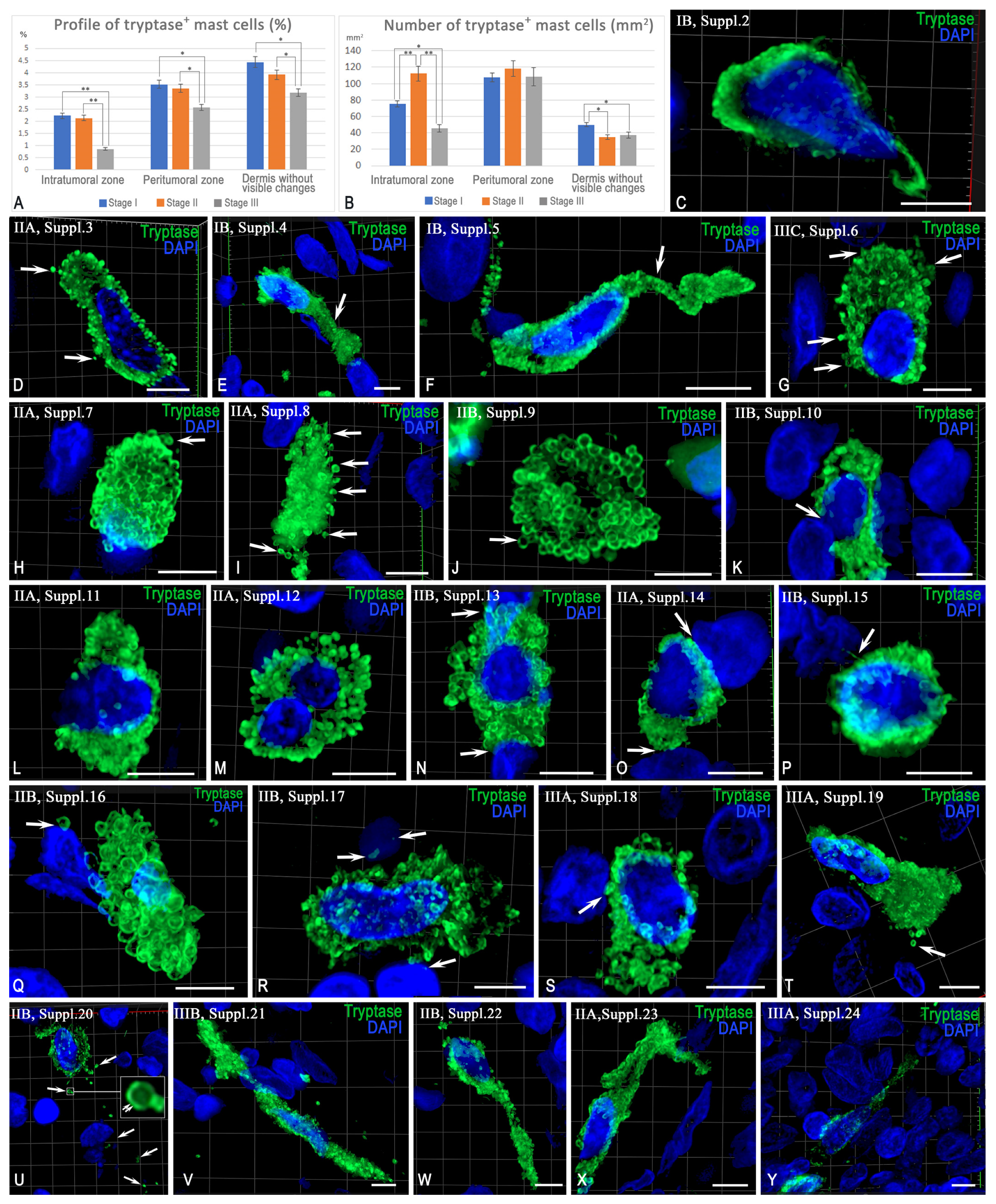 - Atiakshin, D.; Kostin, A.; Buchwalow, I.; Samoilova, V.; Tiemann, M. Protease Profile of Tumor-Associated Mast Cells in Melanoma. Int. J. Mol. Sci. 2022, 23, 8930. [Google Scholar] [CrossRef] [PubMed]