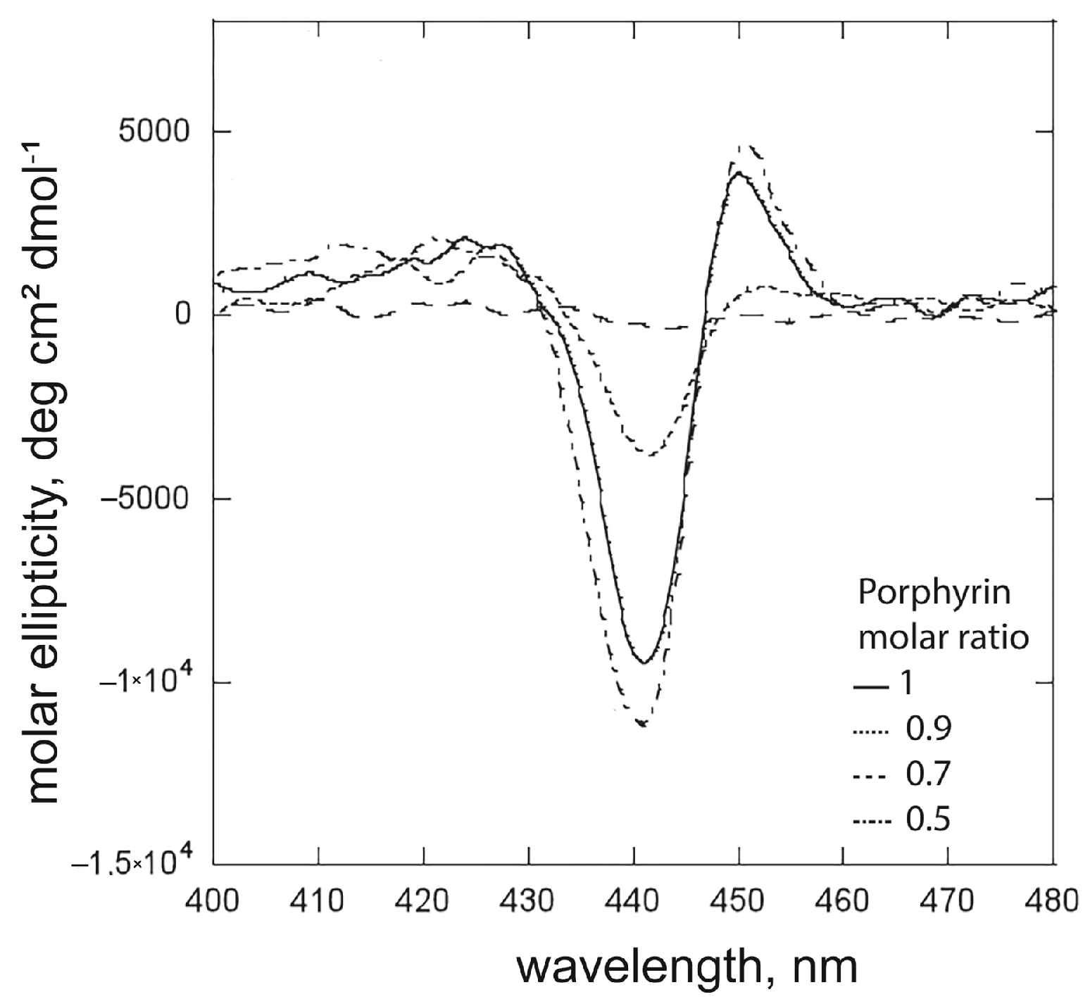 - Bellacchio, E.; Lauceri, R.; Gurrieri, S.; Monsù Scolaro, L.; Romeo, A.; Purrello, R. Template-imprinted chiral porphyrin aggregates. J. Am. Chem. Soc. 1998, 120, 12353–12354. [Google Scholar] [CrossRef]