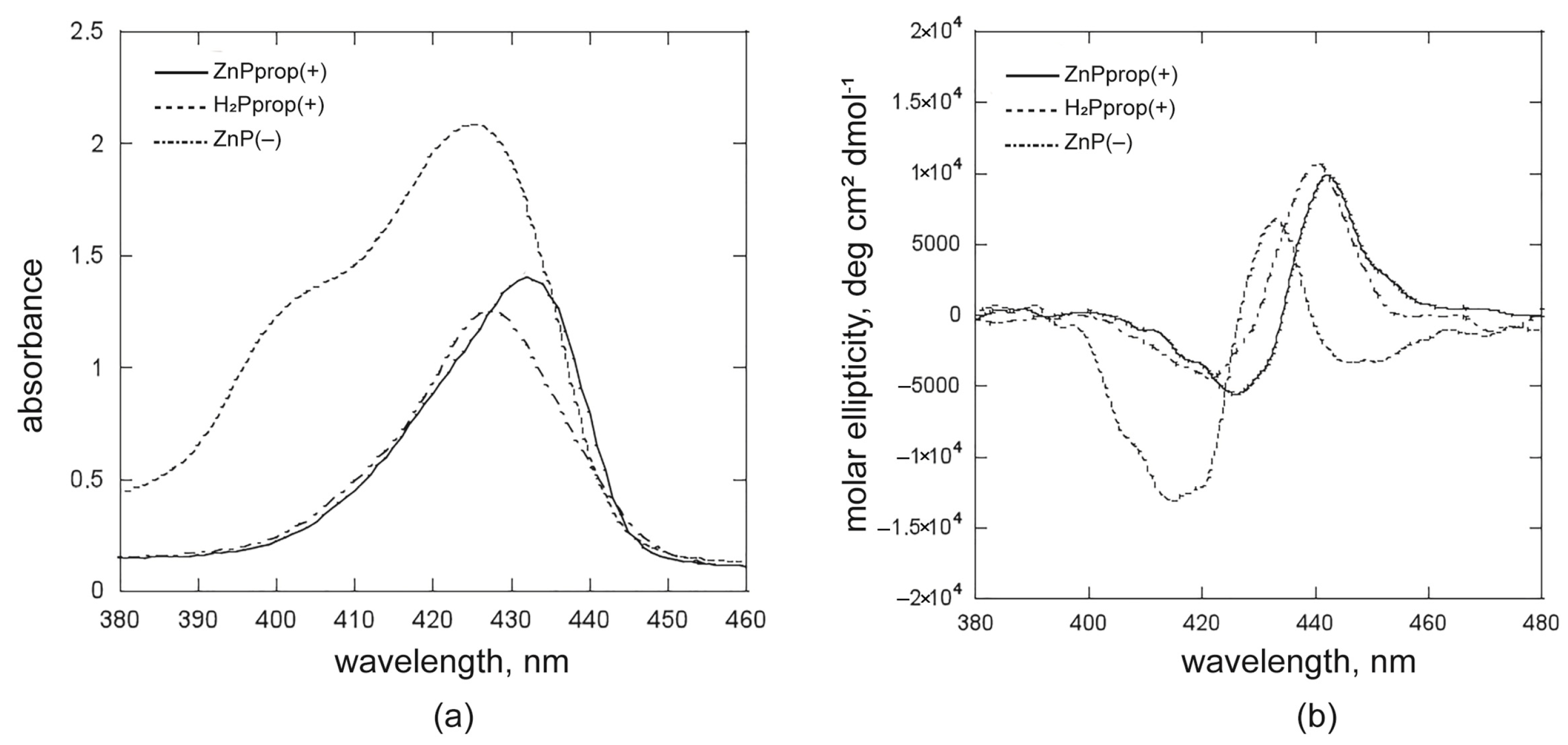 - Stefanelli, M.; Magna, G.; Zurlo, F.; Caso, M.F.; Di Bartolomeo, E.; Antonaroli, S.; Venanzi, M.; Paolesse, R.; Di Natale, C.; Monti, D. Chiral Selectivity of Porphyrin–ZnO Nanoparticle Conjugates. ACS Appl. Mater. Interfaces 2019, 11, 12077–12087. [Google Scholar] [CrossRef] [PubMed]