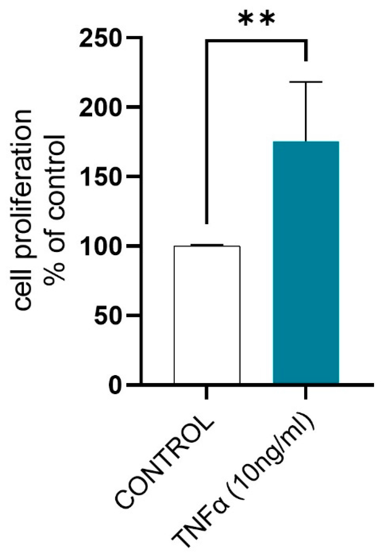 2.2. Experiment 2: The Effects of TNFα on the Proliferation of Equine Endometrial Fibroblasts