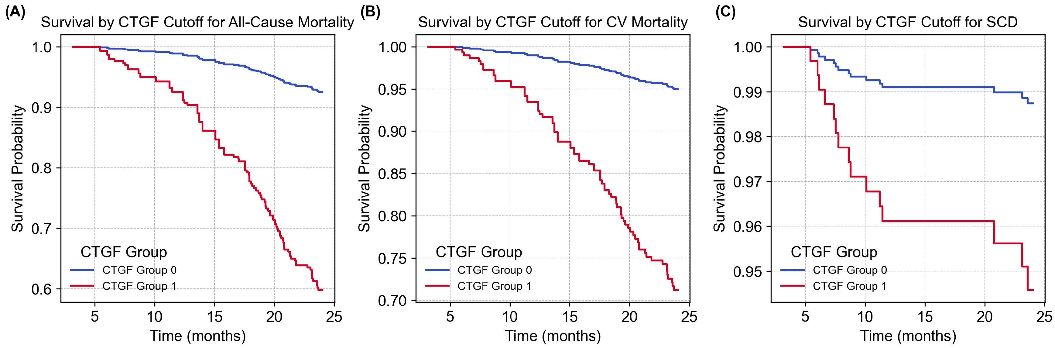 | CTGF (ng/mL) | 1.014 (1.005–1.022) | p = 0.002 | 1.015 (1.006–1.025) | p = 0.002 | 1.020 (1.001–1.040) | p = 0.042 |