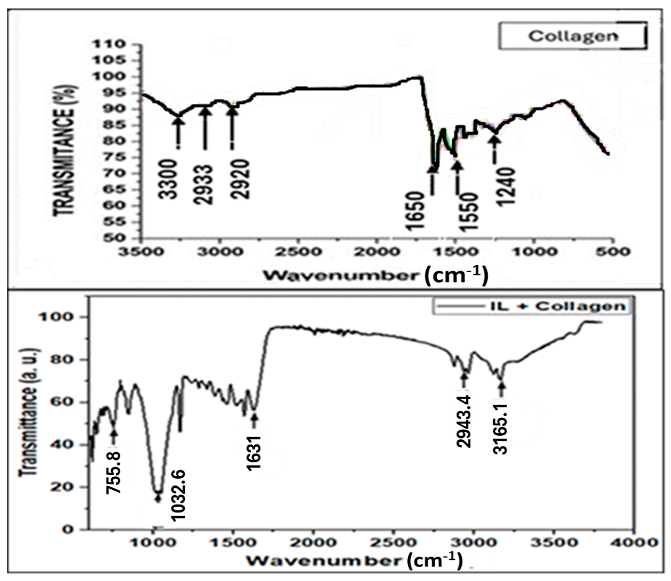 - Gioia, C.; Ricci, A.; Bernardi, L.; Bouzakri, S.; Thakur, V.K. Ionic liquids as versatile tools in the design of collagen-based materials: A review. ACS Sustain. Chem. Eng. 2022, 10, 13188–13208. [Google Scholar]