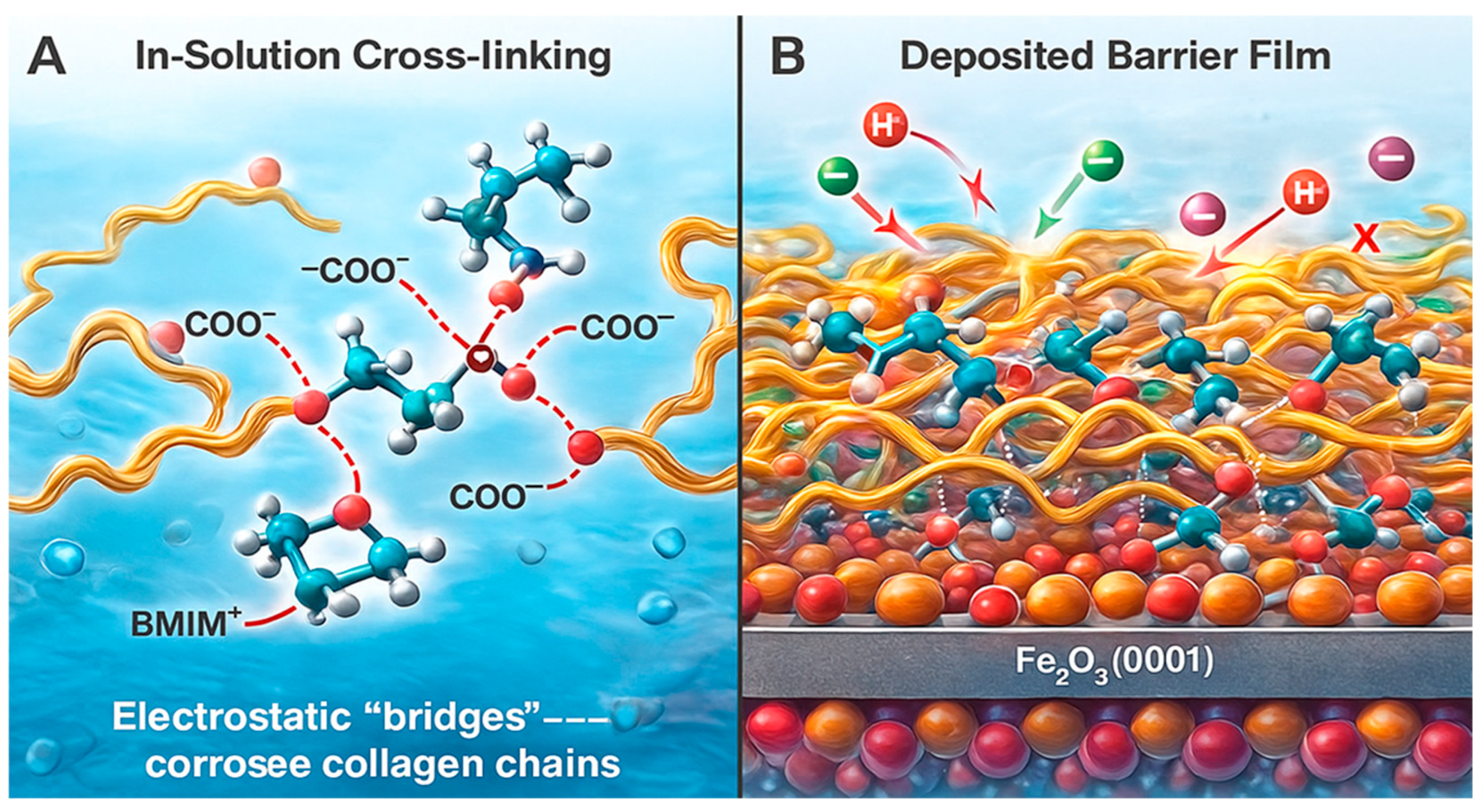 Multi-Modal Adsorption and Synergistic Corrosion Inhibition of a Collagen–BMIM·Br Composite on Mild Steel