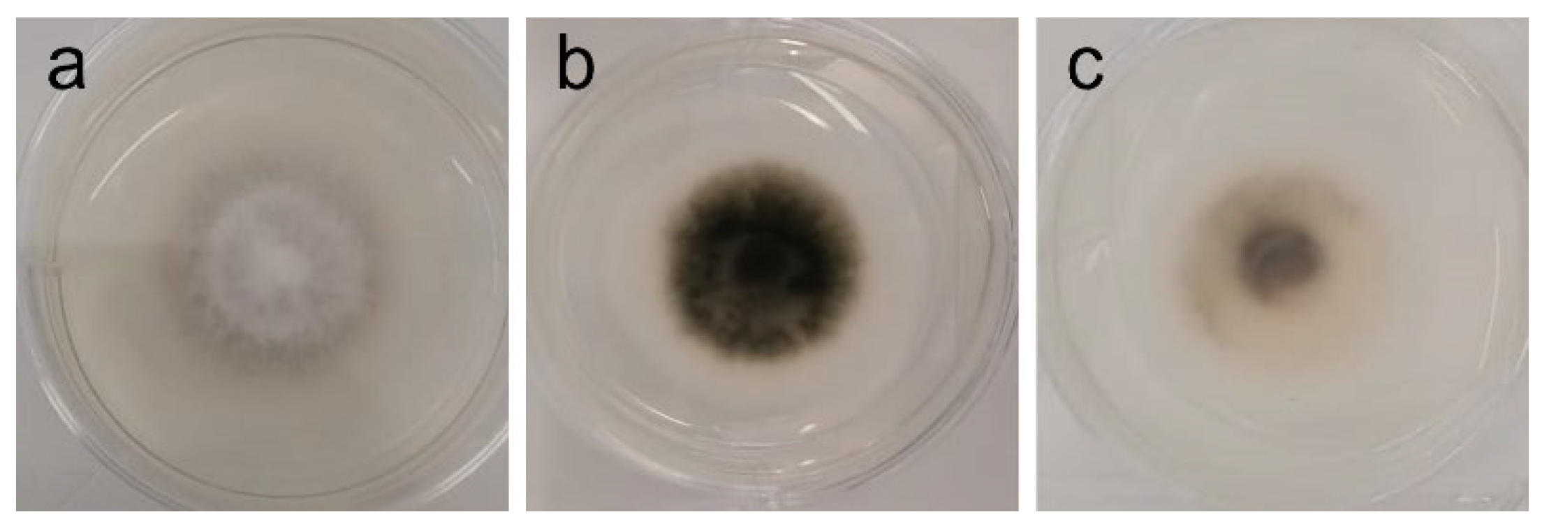 - Blechert, O.; Zheng, H.; Zang, X.; Wang, Q.; Liu, W. Influence of the Cultivation Medium and PH on the Pigmentation of Trichophyton rubrum. PLoS ONE 2019, 14, e0222333. [Google Scholar] [CrossRef]