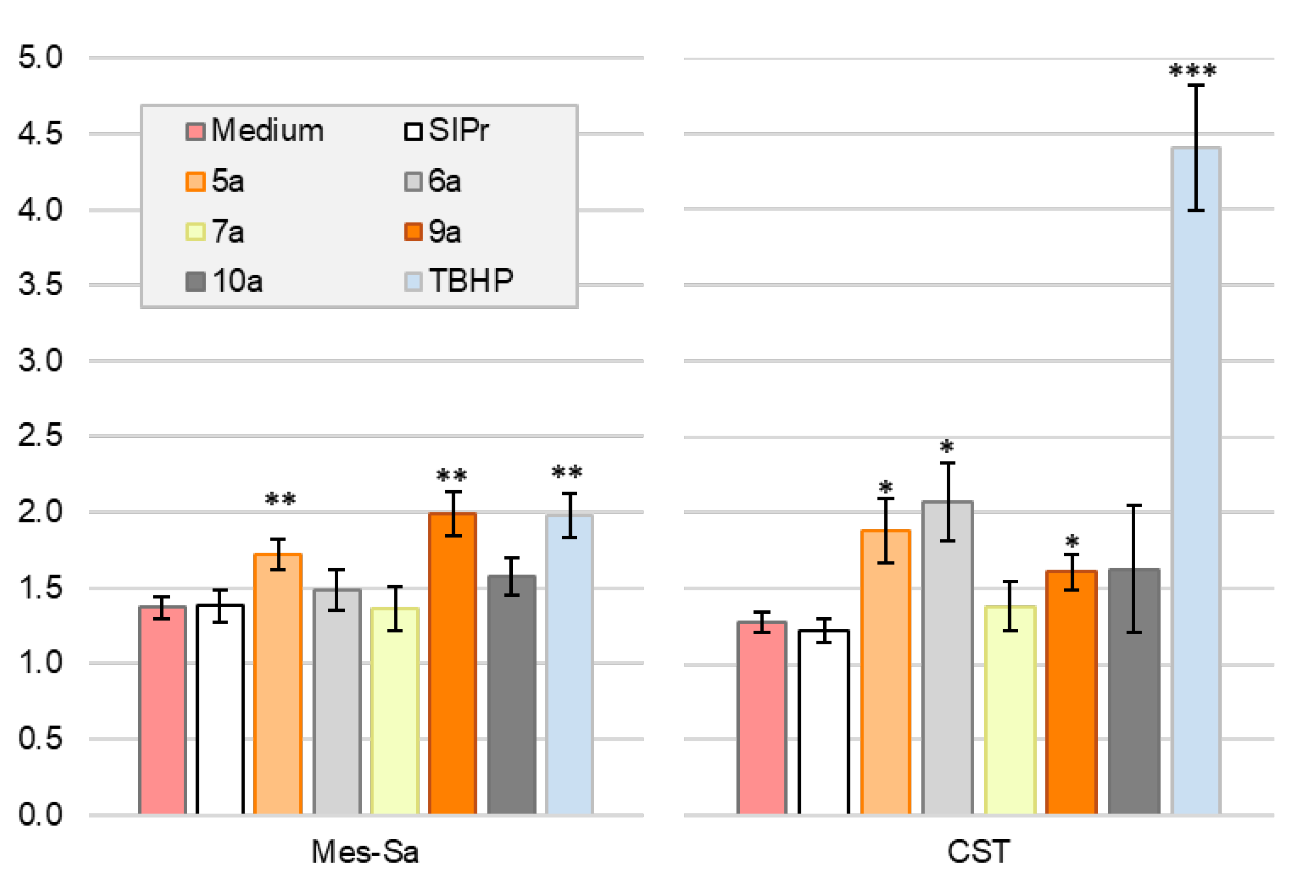 2DCFDA assay was performed to assess whether the compounds induced intracellular reactive oxygen species (ROS) in Mes-Sa and CST cell lines (